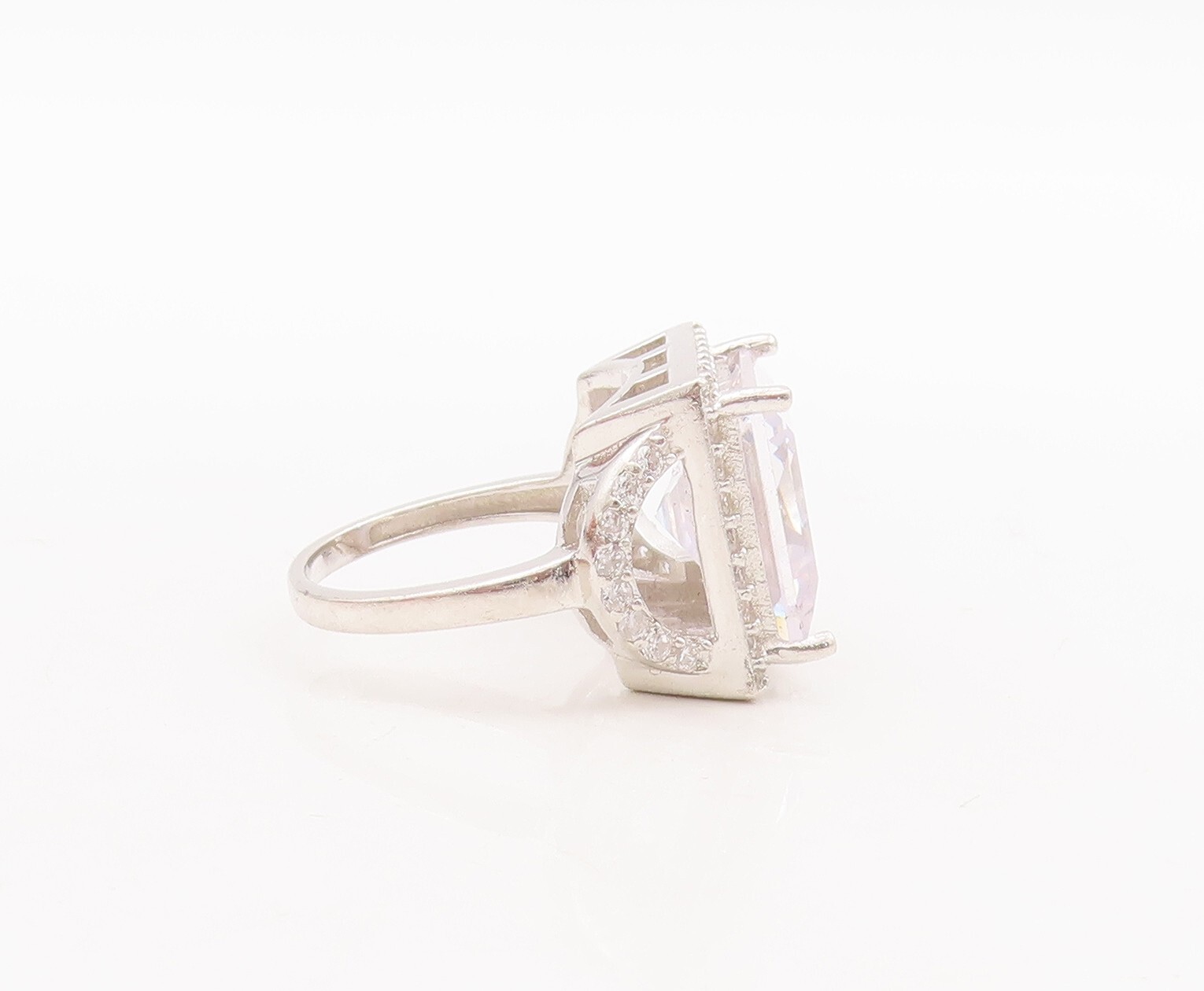как выглядит 925 Sterling Silver Vintage Ring Cutout Square Cut CZ Inlay Sz 5 RG28758 фото