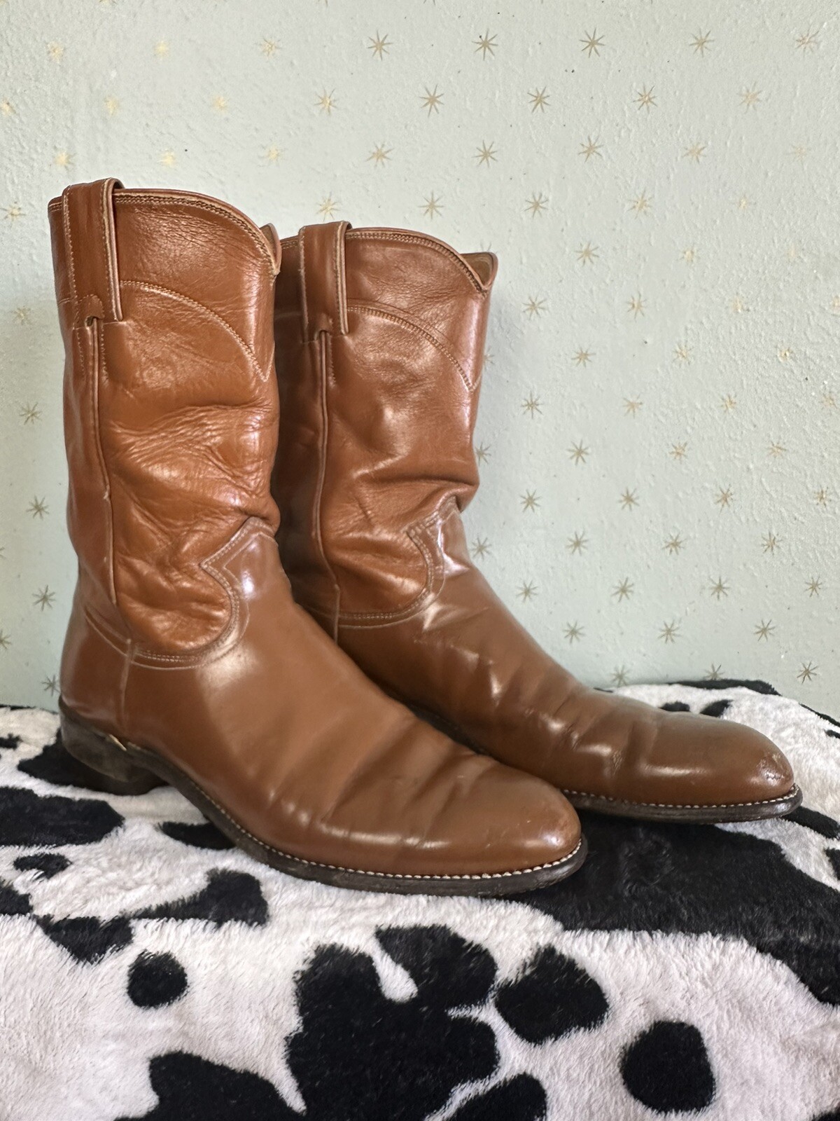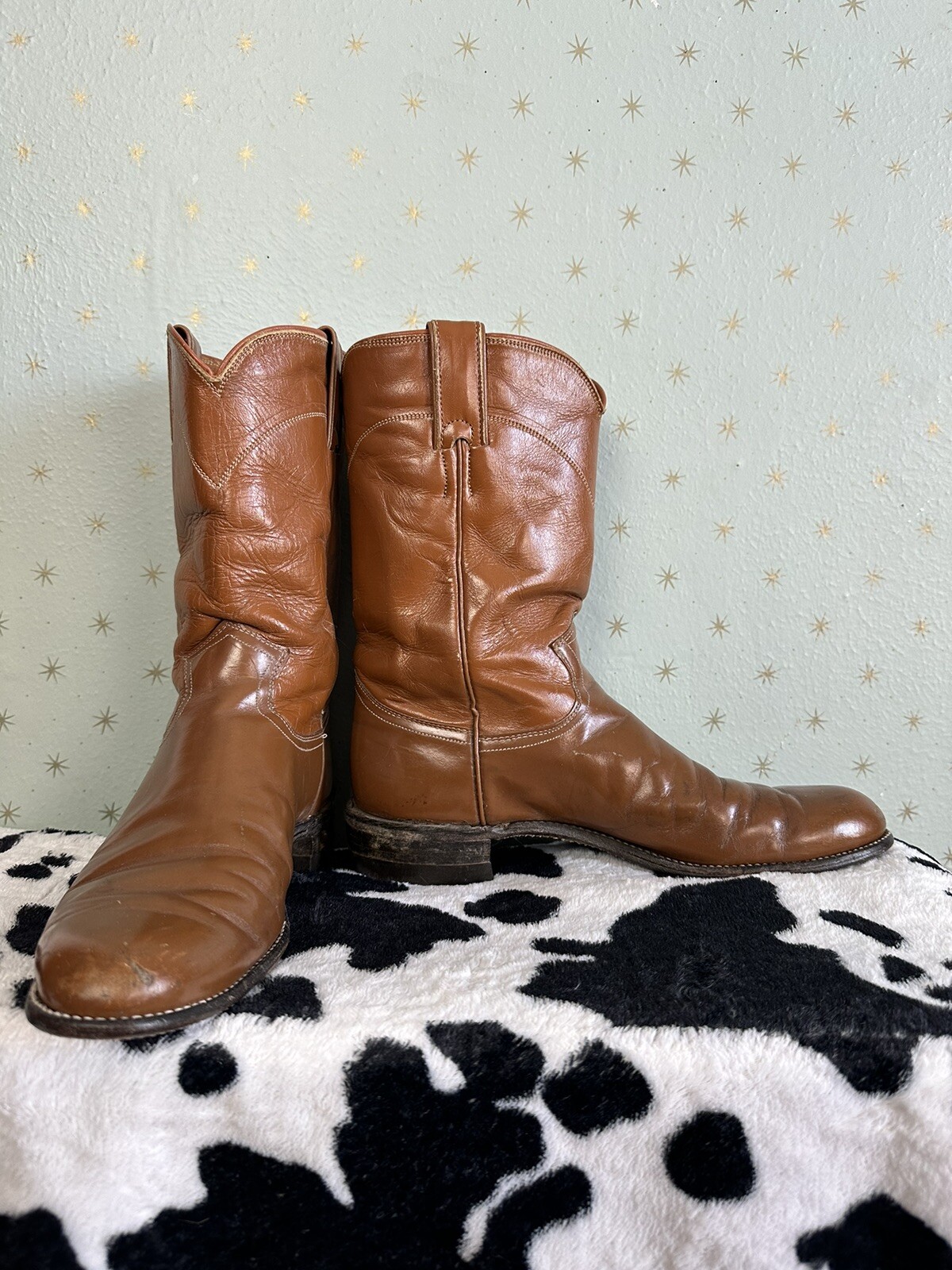 Vintage 80s Cognac Justin Roper Cowboy Boots Ladies 8A
