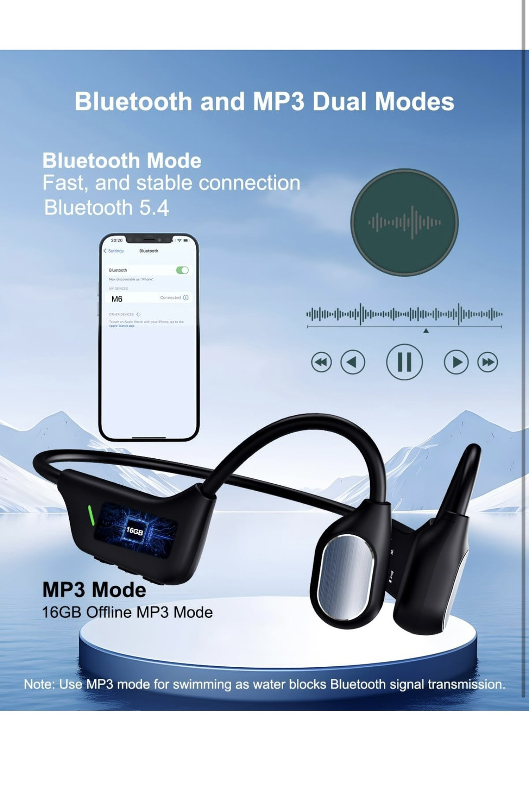 Bone Conduction Headphones Open Ear Waterproof Swimming Headphones Bluetooth 5.4