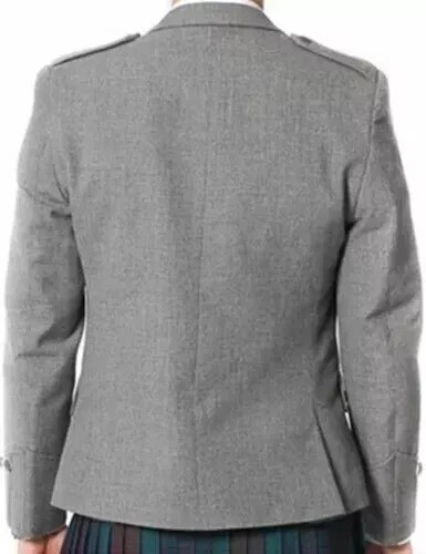 Men's Scottish Wedding Kilt Jacket Grey Wool Argyle Kilt Jacket With Waistcoat
