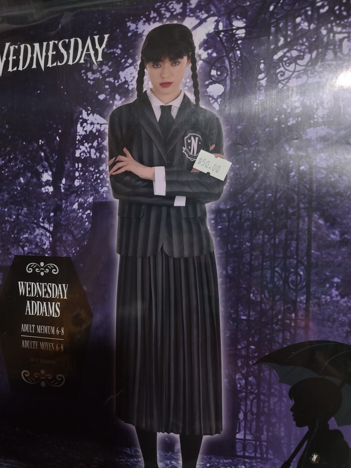 Wednesday Addams School Uniform Costume Cosplay Dress Wig Set - Adult M 8-10