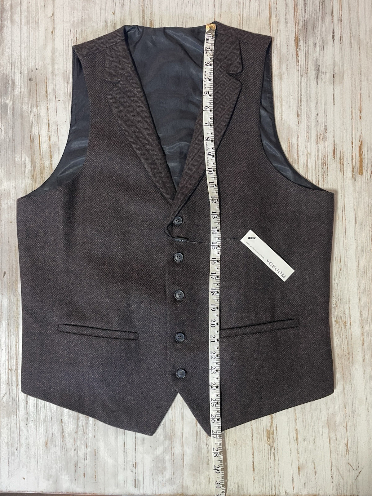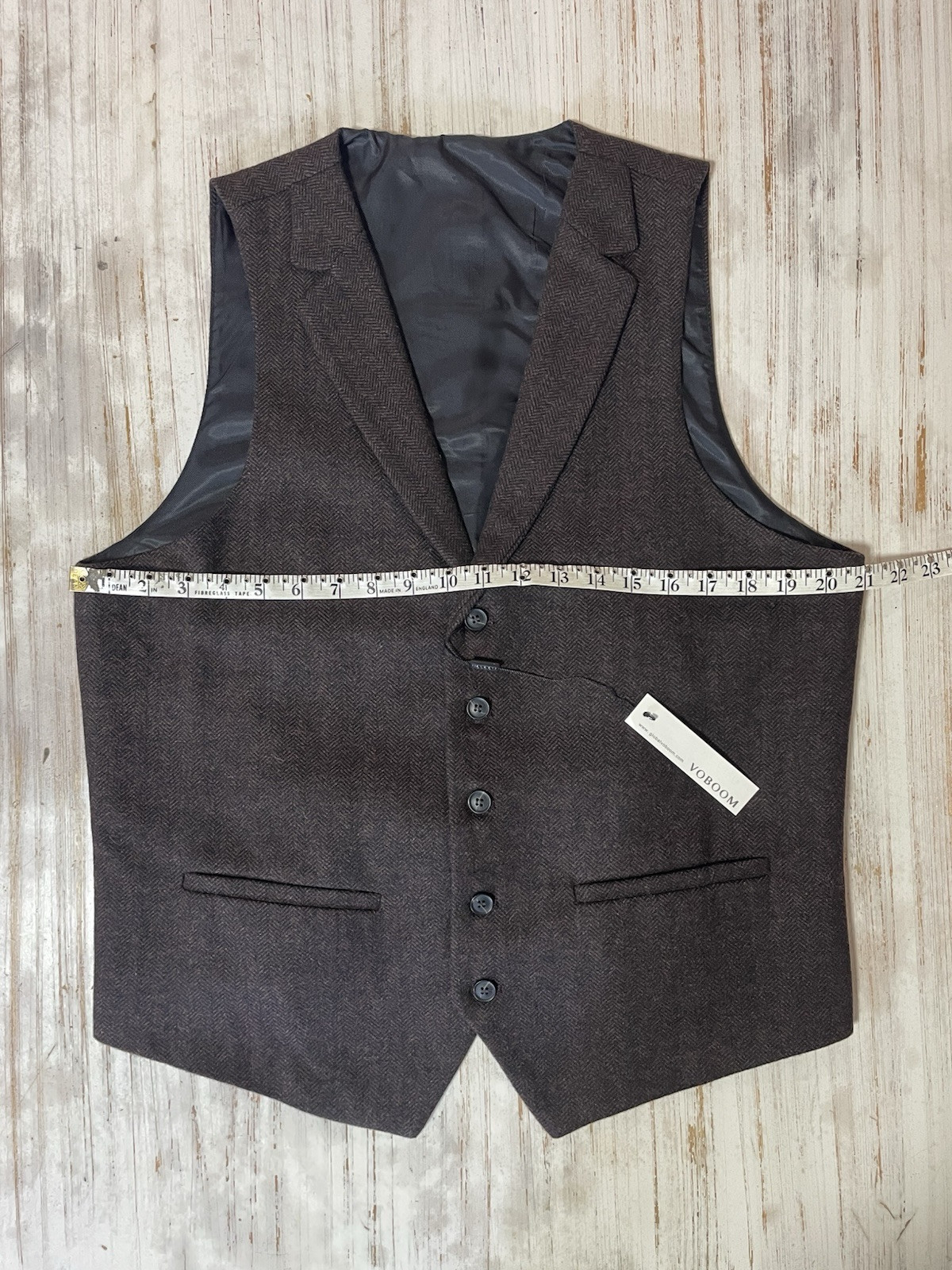 как выглядит Voboom Wool Tweed Vest Waistcoat Mens Large Herringbone Brown Collar 5 Button фото