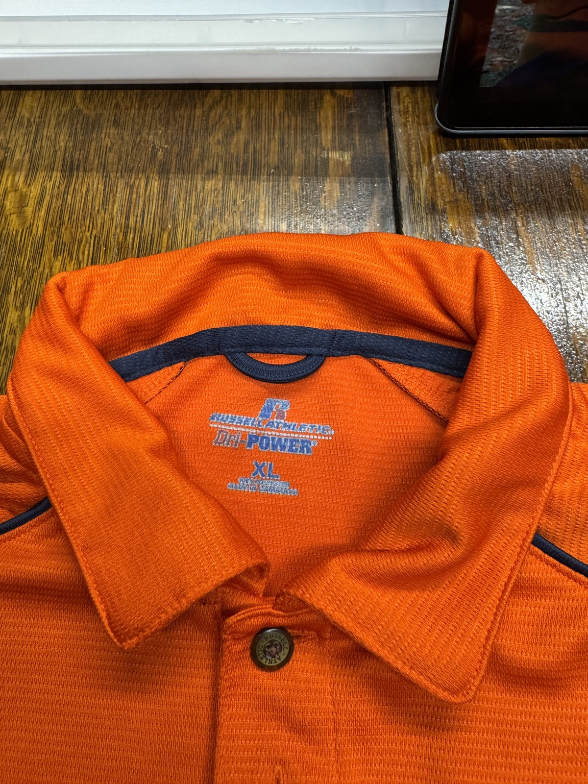 как выглядит Vtg Auburn Tigers Mens Russell Athletic Polo Shirt Blue Size XL Orange фото