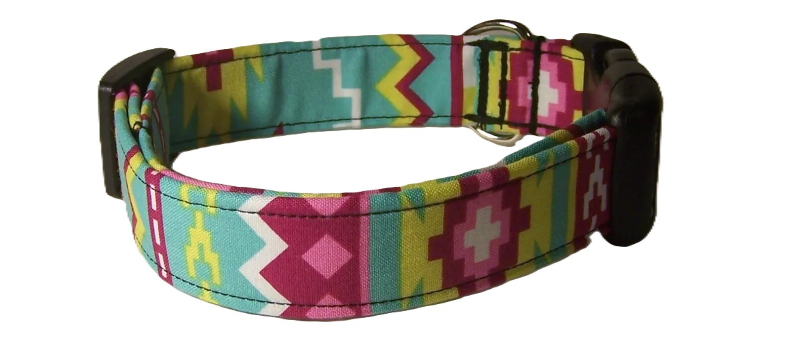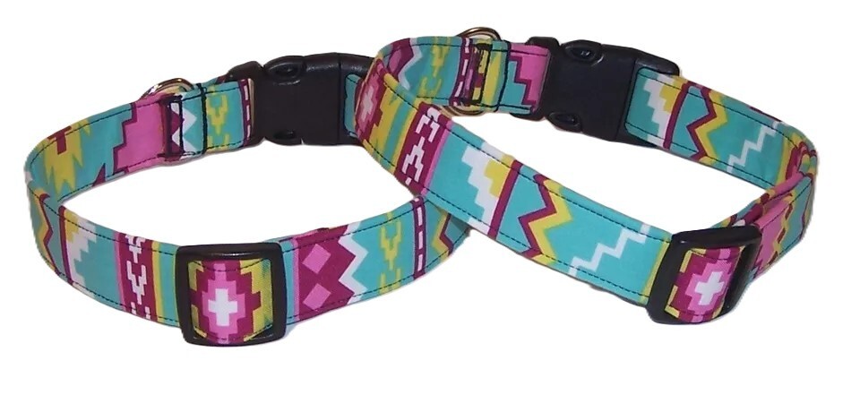 Wet Nose Designs Colorful Pink Turquoise Aztec Dog Collar Tribal COLOR Buckle