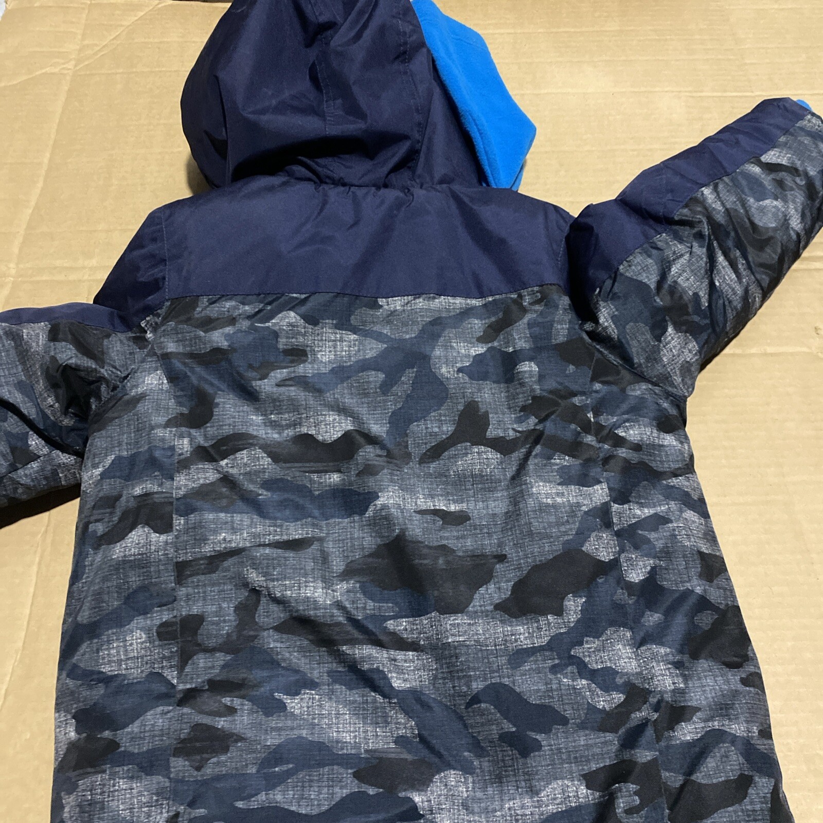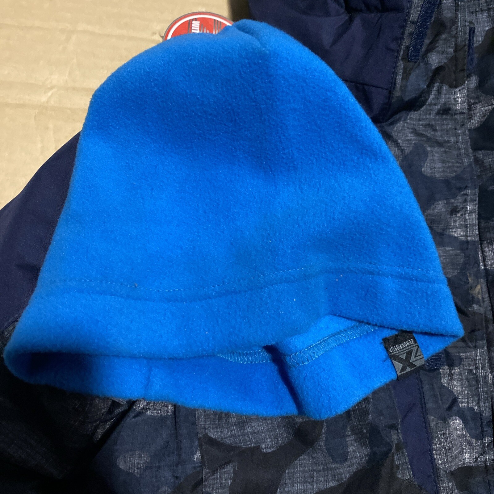 zero xposur kids 6x/7 blue camo jacket beanie