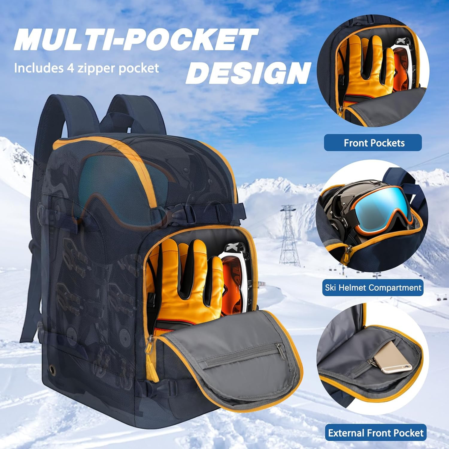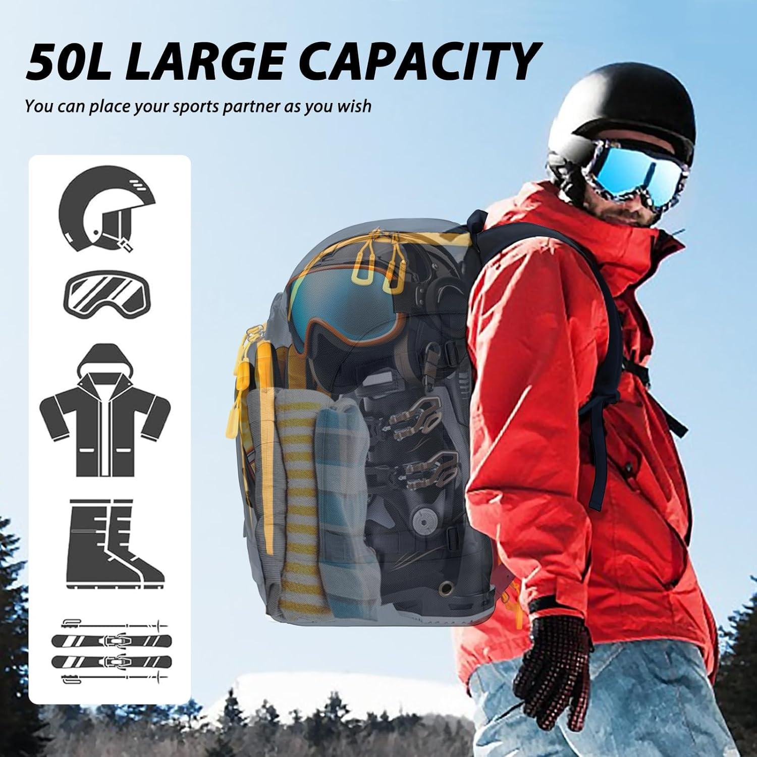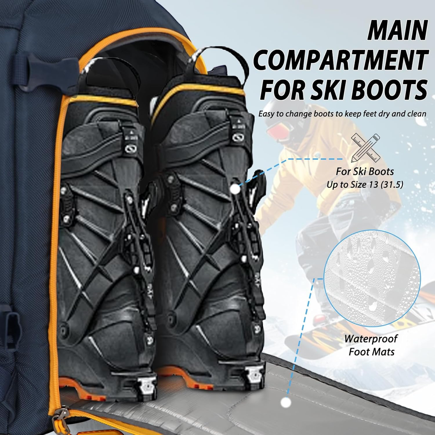 как выглядит Ski Boot Bag - 50L Waterproof Ski and Snowboard Boots Travel Backpack for Skis, фото