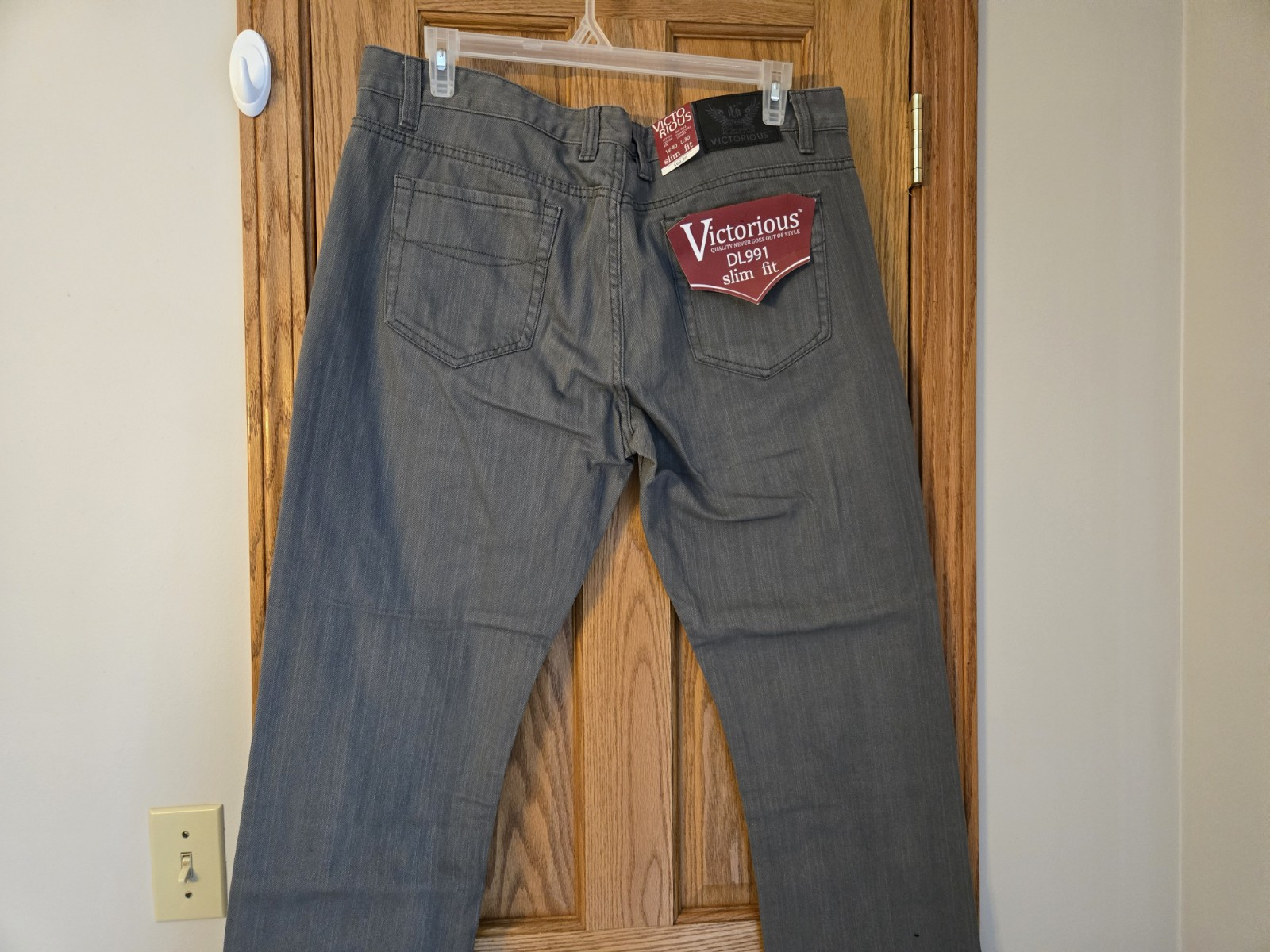 как выглядит Victorious Mens Slim Fit Colored Cotton Denim Jeans DL991 - Gray NWT фото