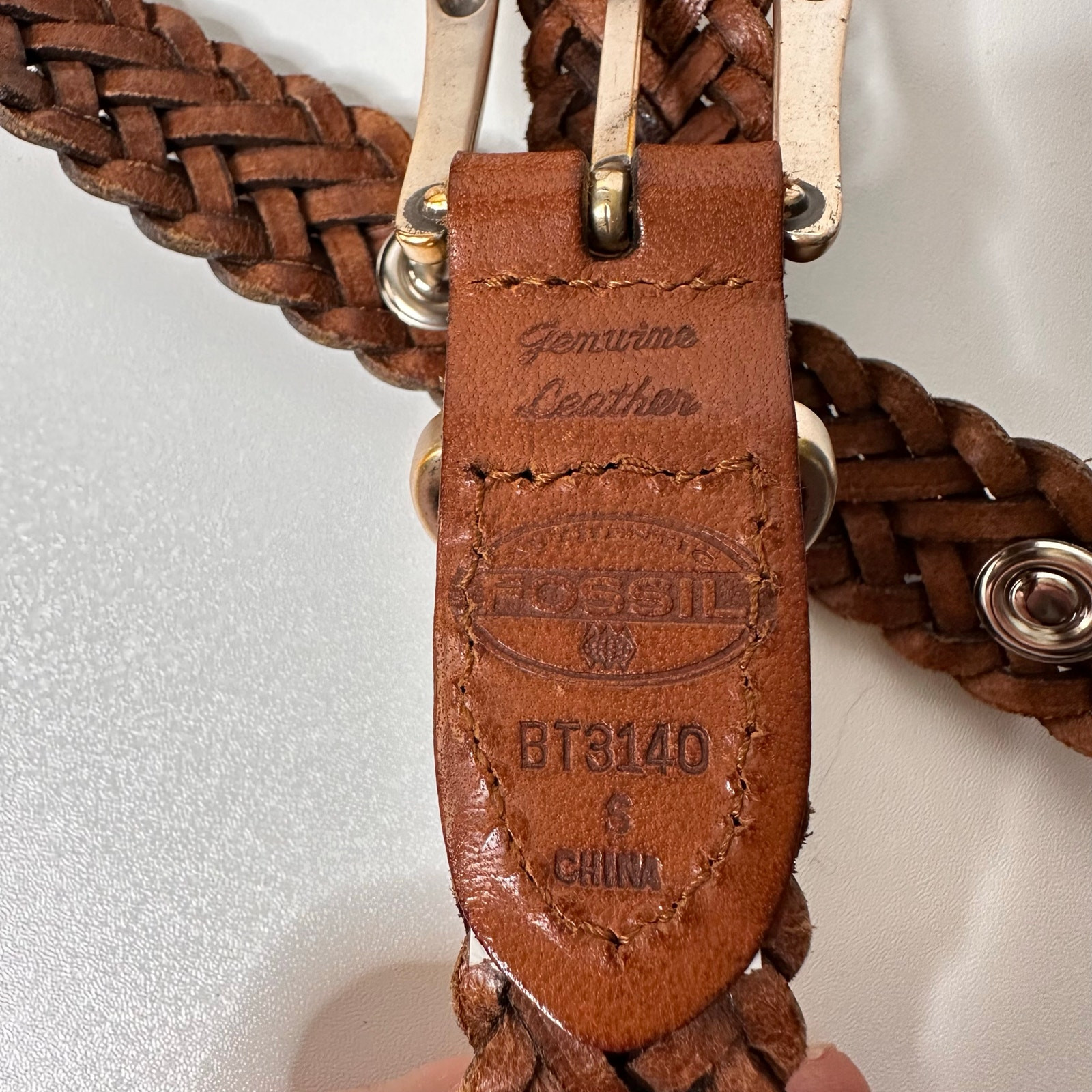 Fossil Womens Braided Woven Leather Belt Flower Concho Embellishments Waist SM