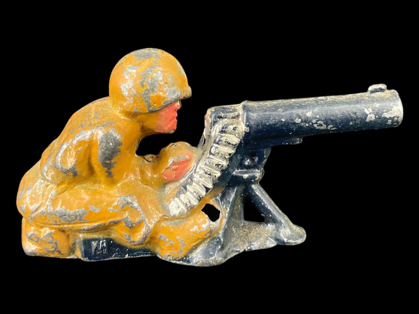 Vtg Barclay Manoil 531 Lead Toy Figurine Military Solider w/ Machine Gunner