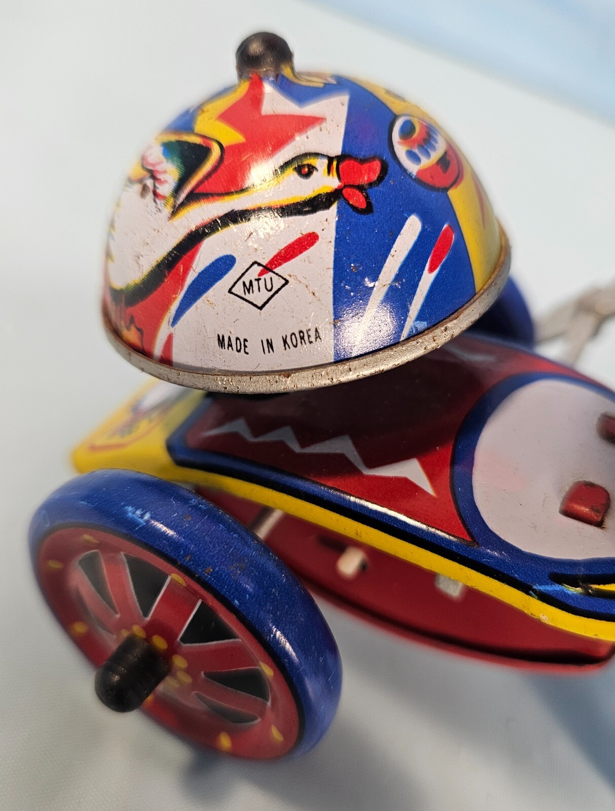 Vintage Tin Wind-Up Boy Riding Tricycle Made In Korea Works Great