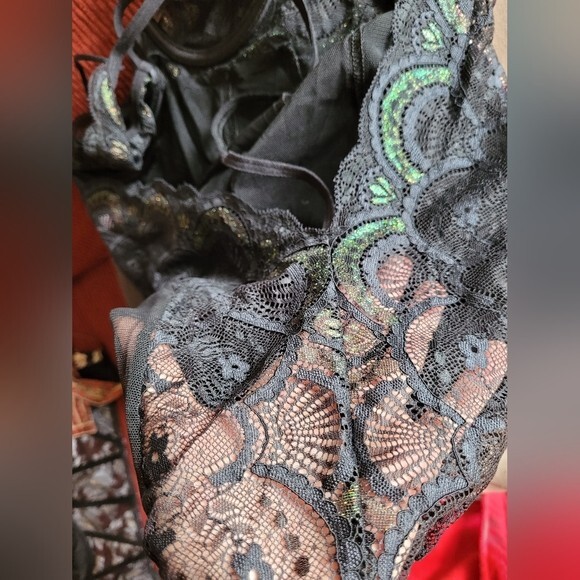 как выглядит Shirley of Hollywood sheer black corset nightie with garter claps size large фото