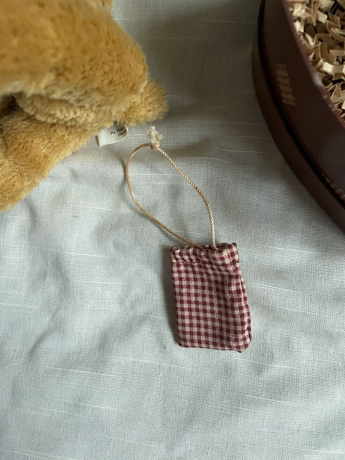 Items Included: Bow, cinnamon sticks, gingham satchel