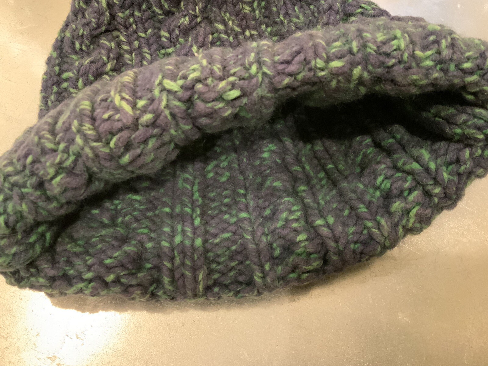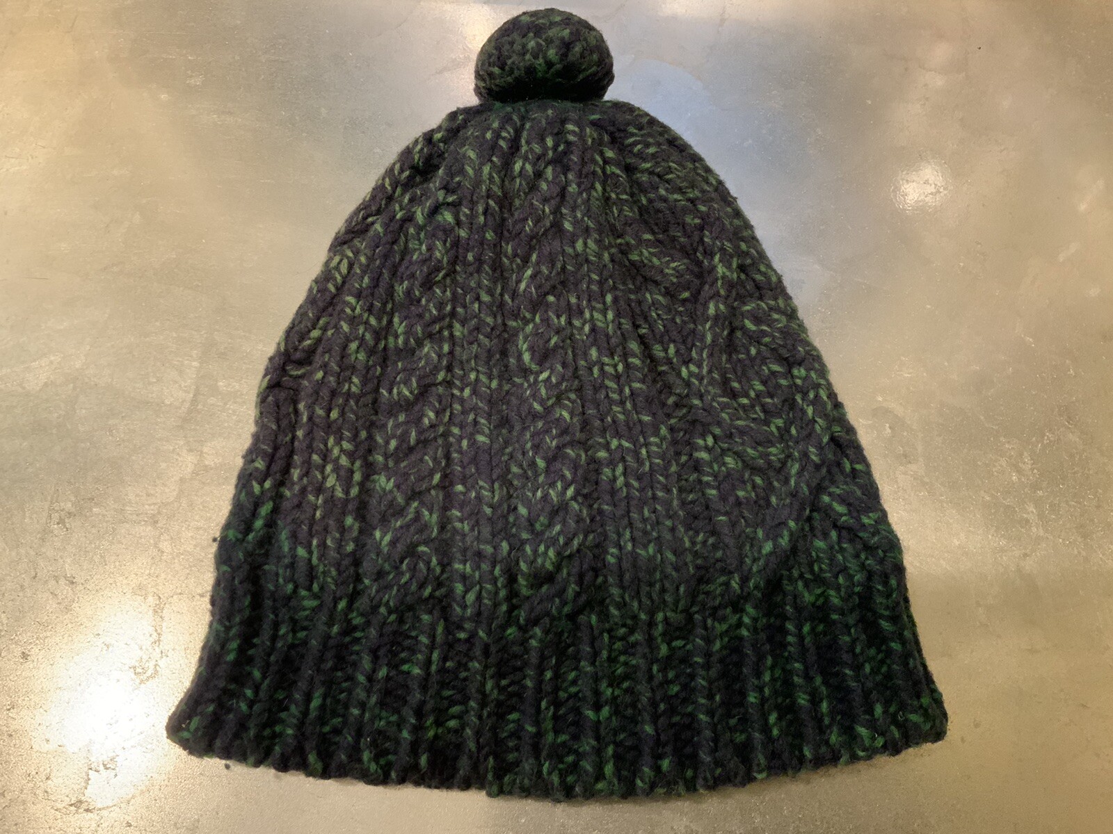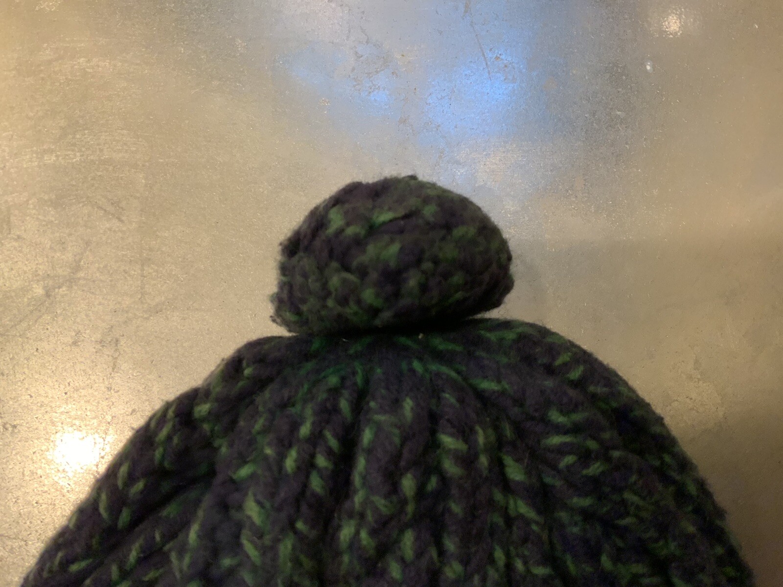 как выглядит Chunky Knit Navy Blue Green Tweed Beanie Hat Pom Pom One Size фото