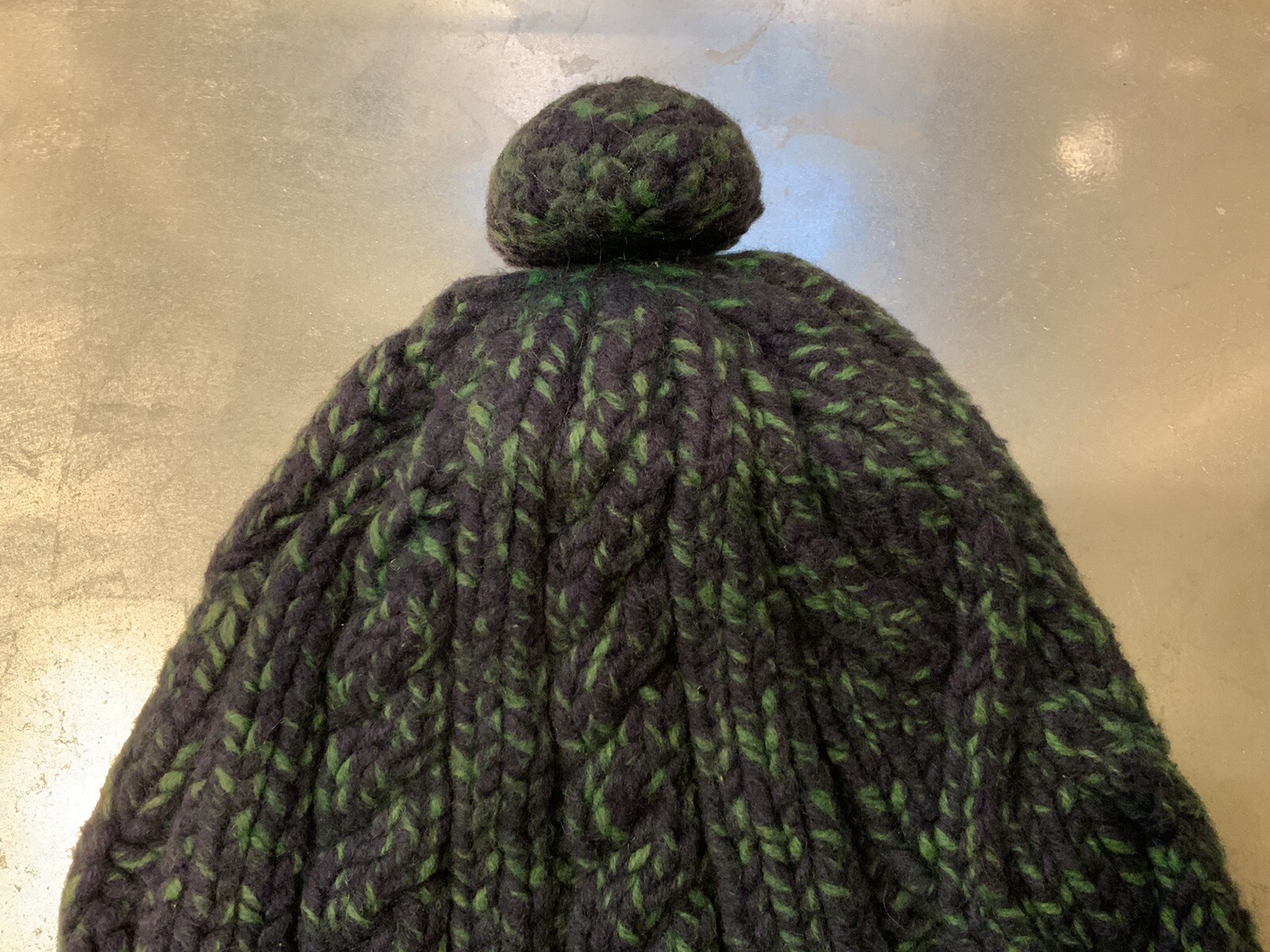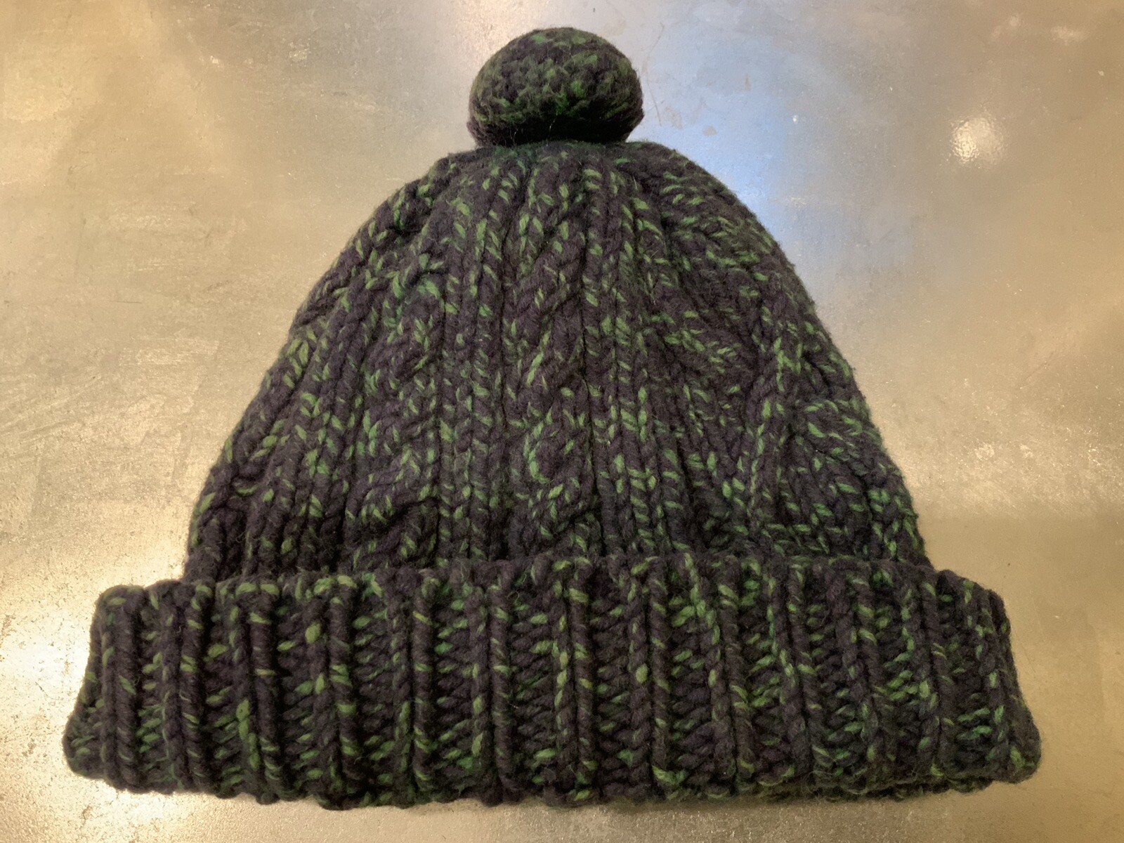 Chunky Knit Navy Blue Green Tweed Beanie Hat Pom Pom One Size