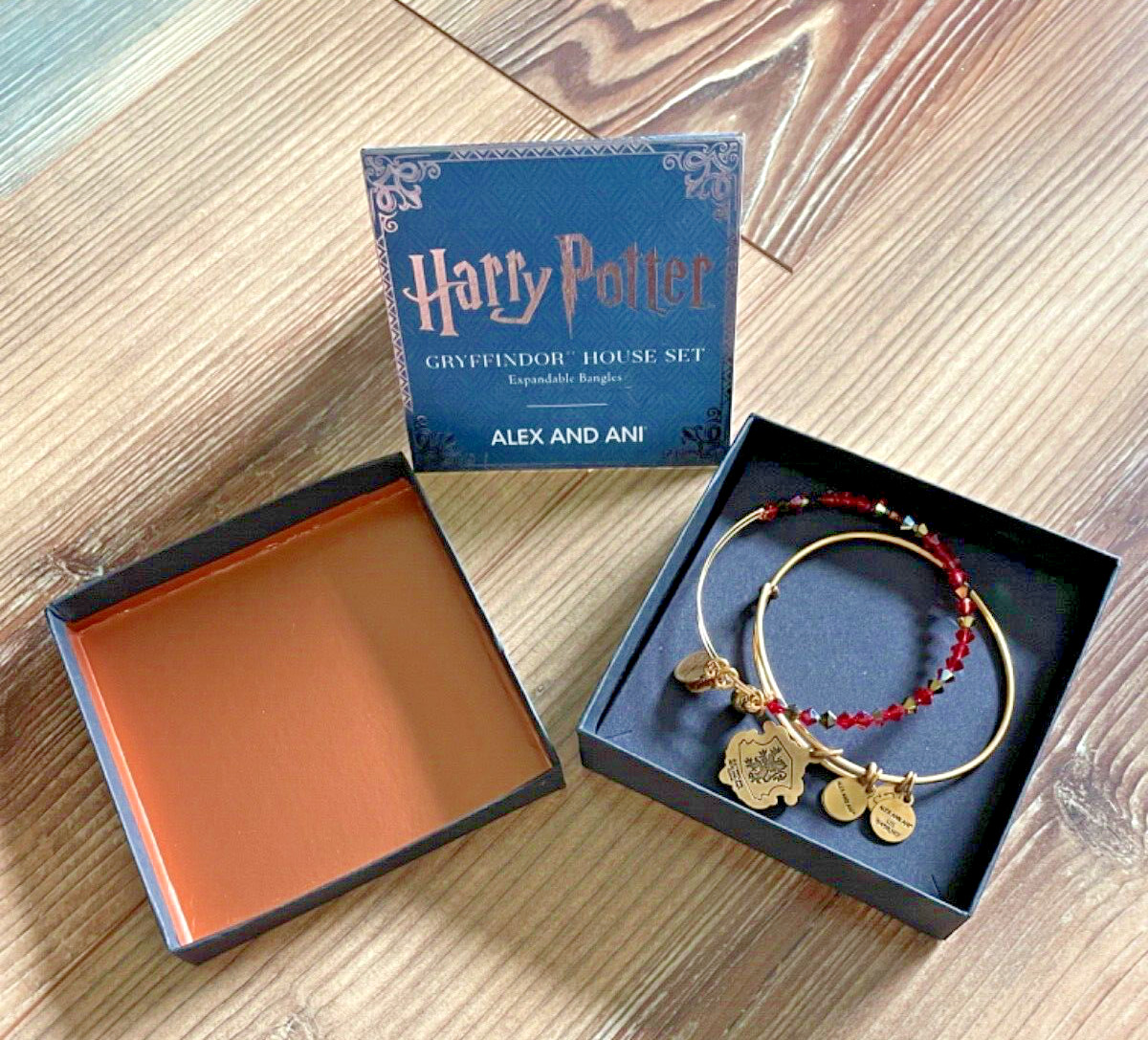 как выглядит New Alex And Ani Harry Potter Griffindor House Expandable Bangle Set of 2 фото