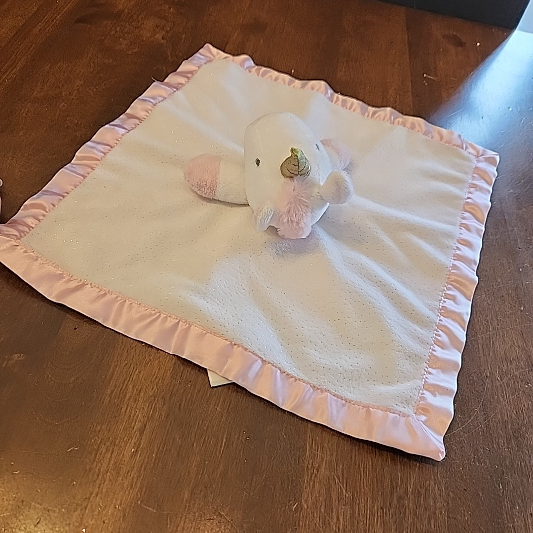 как выглядит Cloud Island Unicorn Lovey Security Blanket Gold Speck Flakes Plush Baby 14 фото