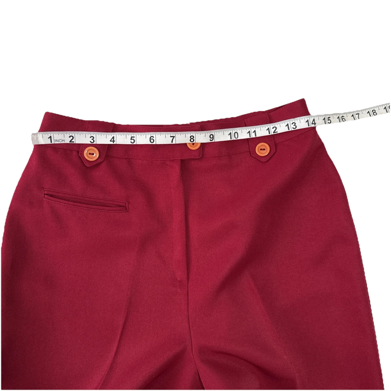 как выглядит VNTG Red Crimson High Waisted Pants 70s 60s Straight Leg Decorative Buttons фото