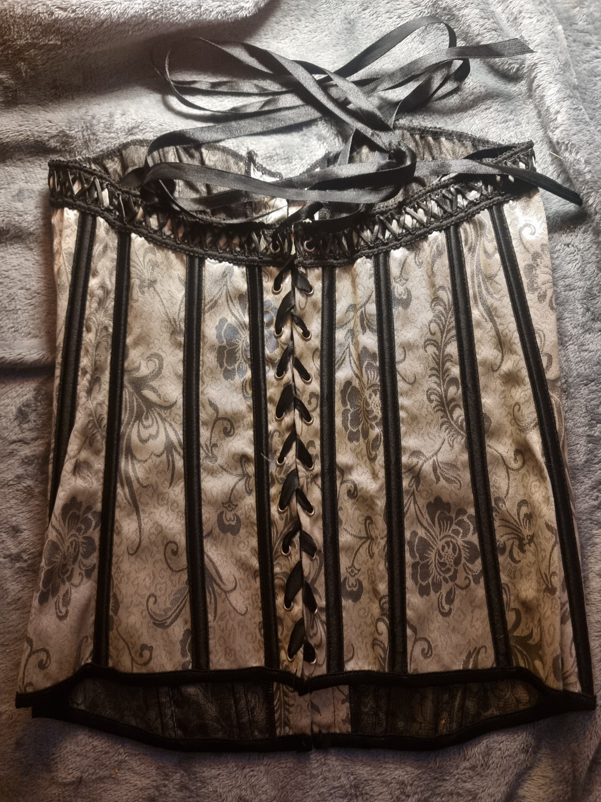 как выглядит Light Green Floral And Black Corset With Lacing And Clasps Never Worn фото