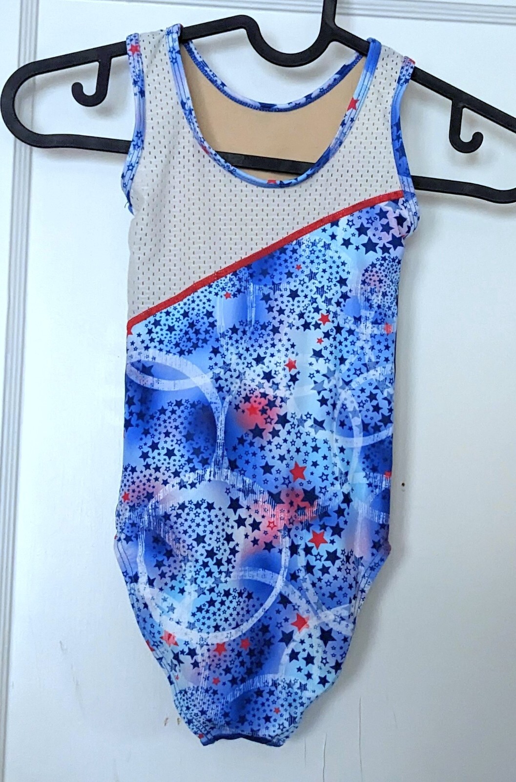 Plum Practicewear Gymnastics Leotard Patriotic Blue Mesh Racerback Print Size CS