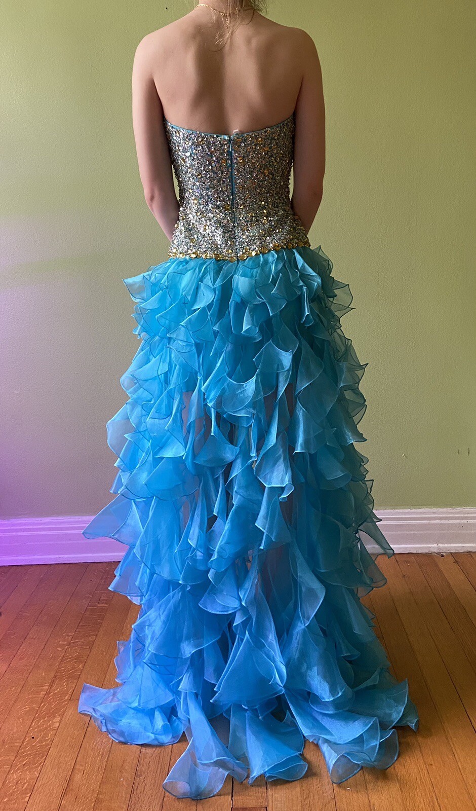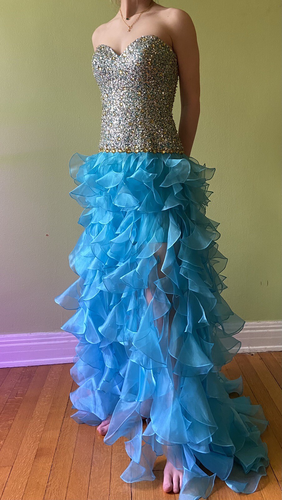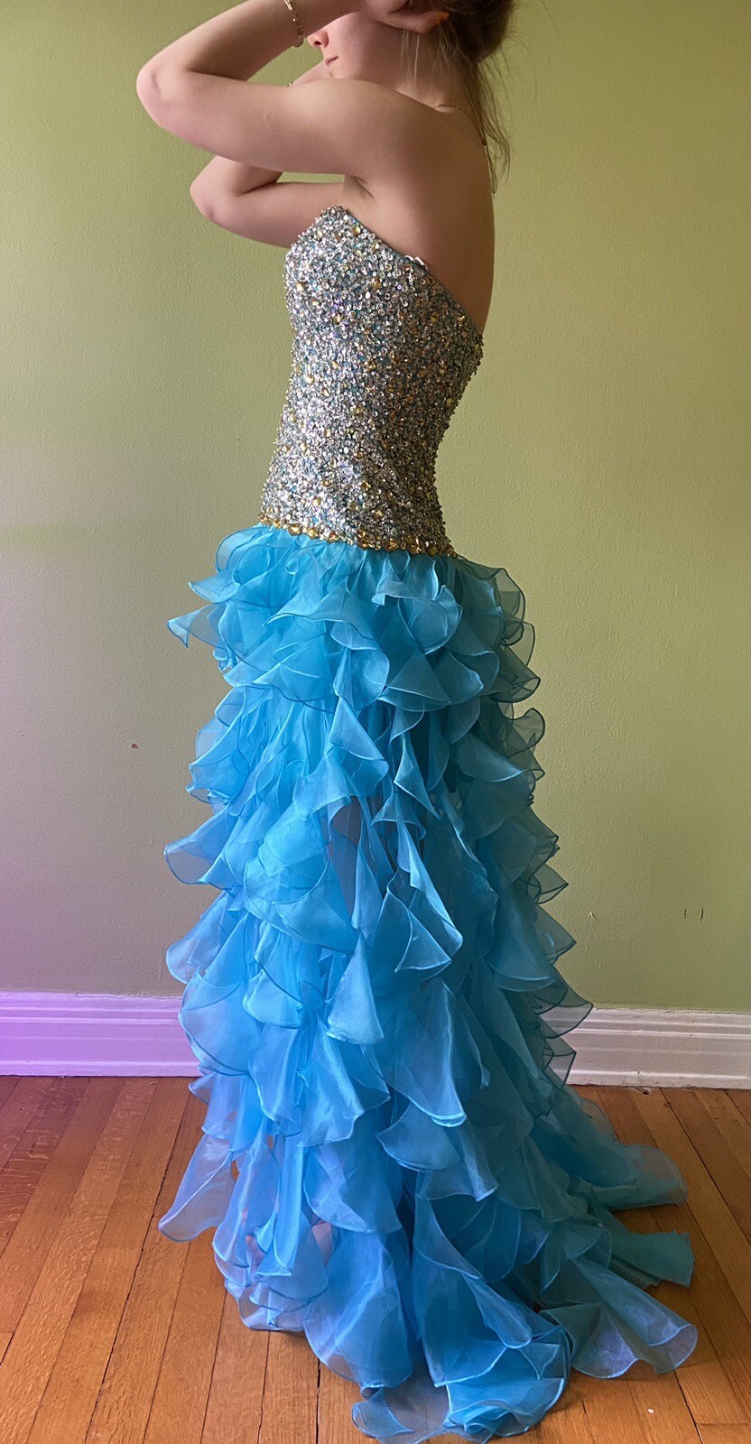 как выглядит Sherri Hill Sz 0 Strapless Prom Dress Formal Blue Jewelled Bodice Ruffled Skirt фото