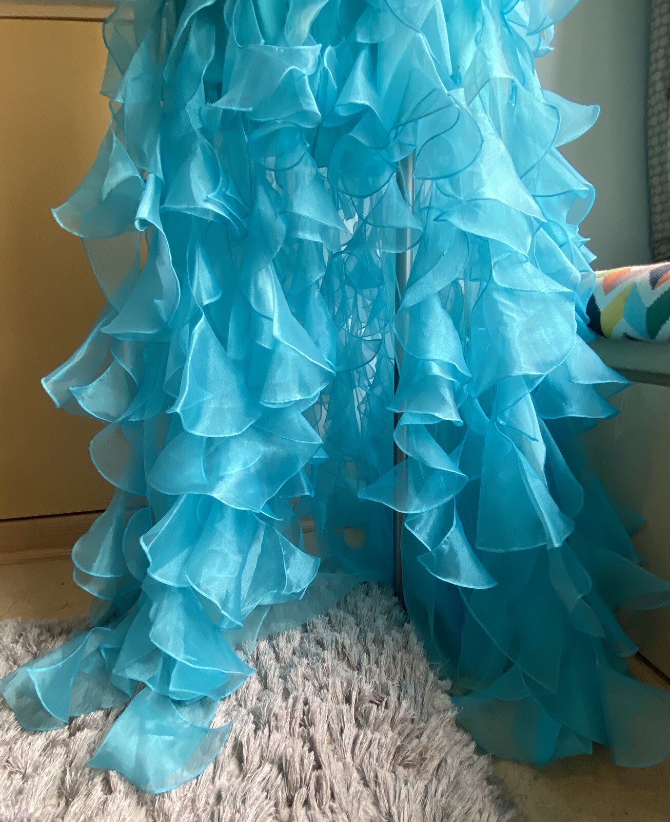 Accents: Ruffle, Jewelled bodice, ruffled skirt