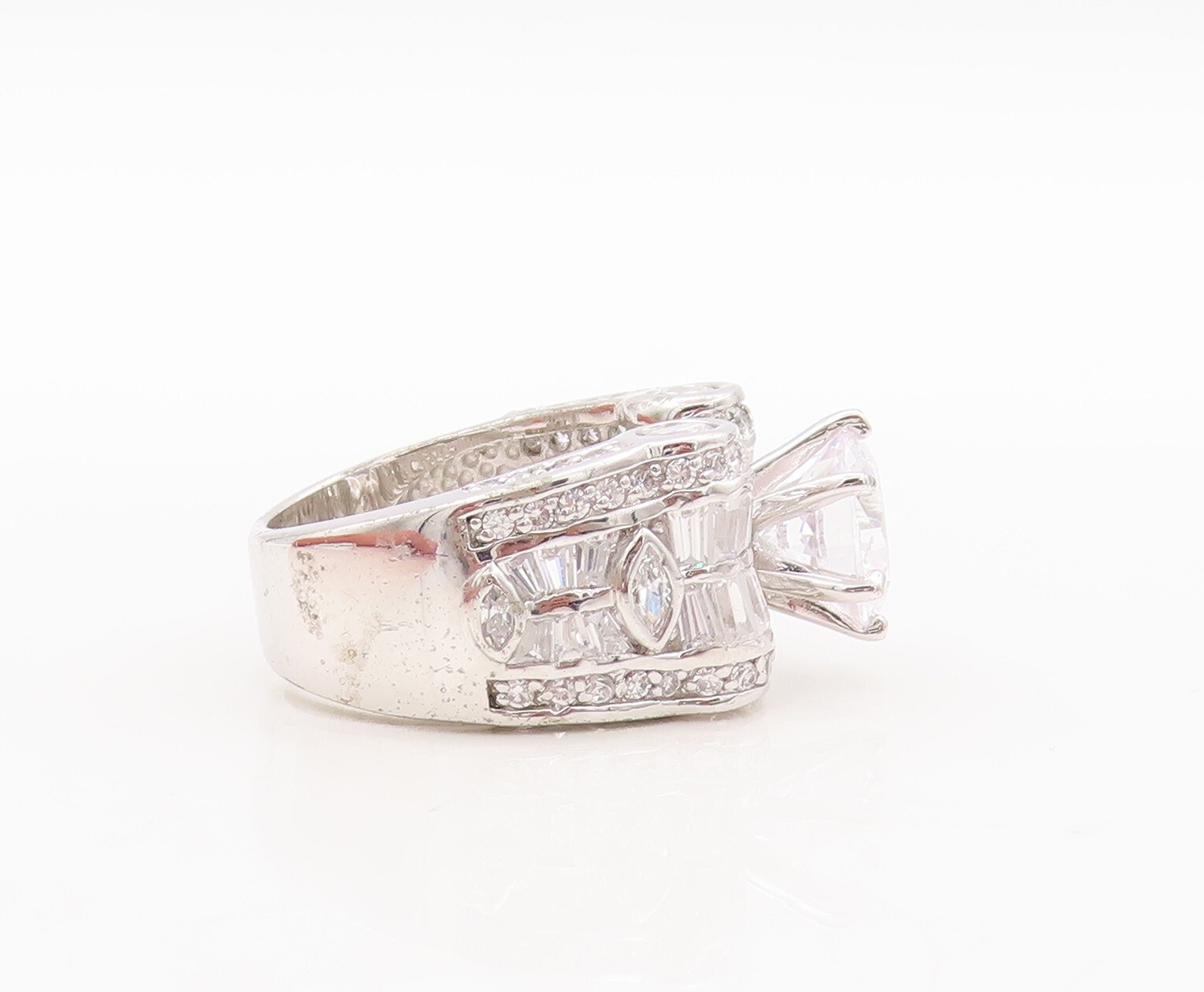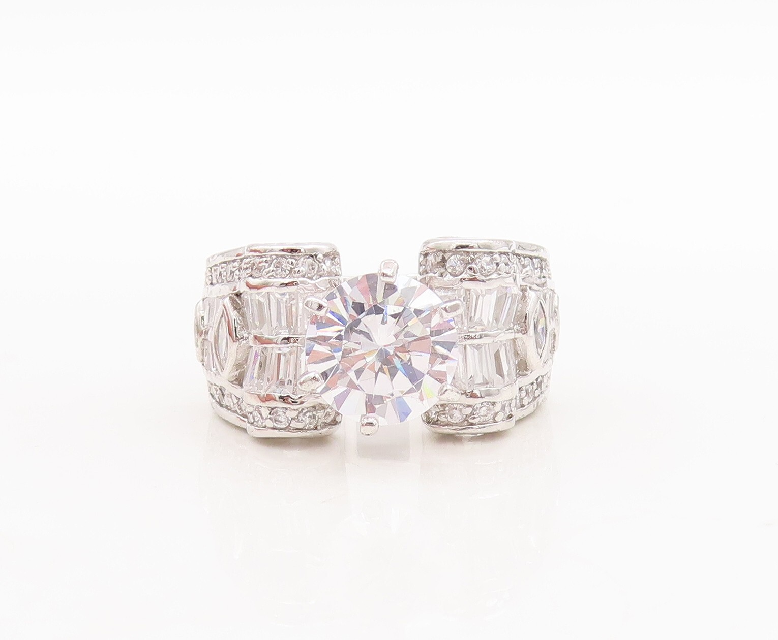 925 Sterling Silver Vintage Ring Multi Shape CZ Inlay Wedding Ring Sz 7 RG29556
