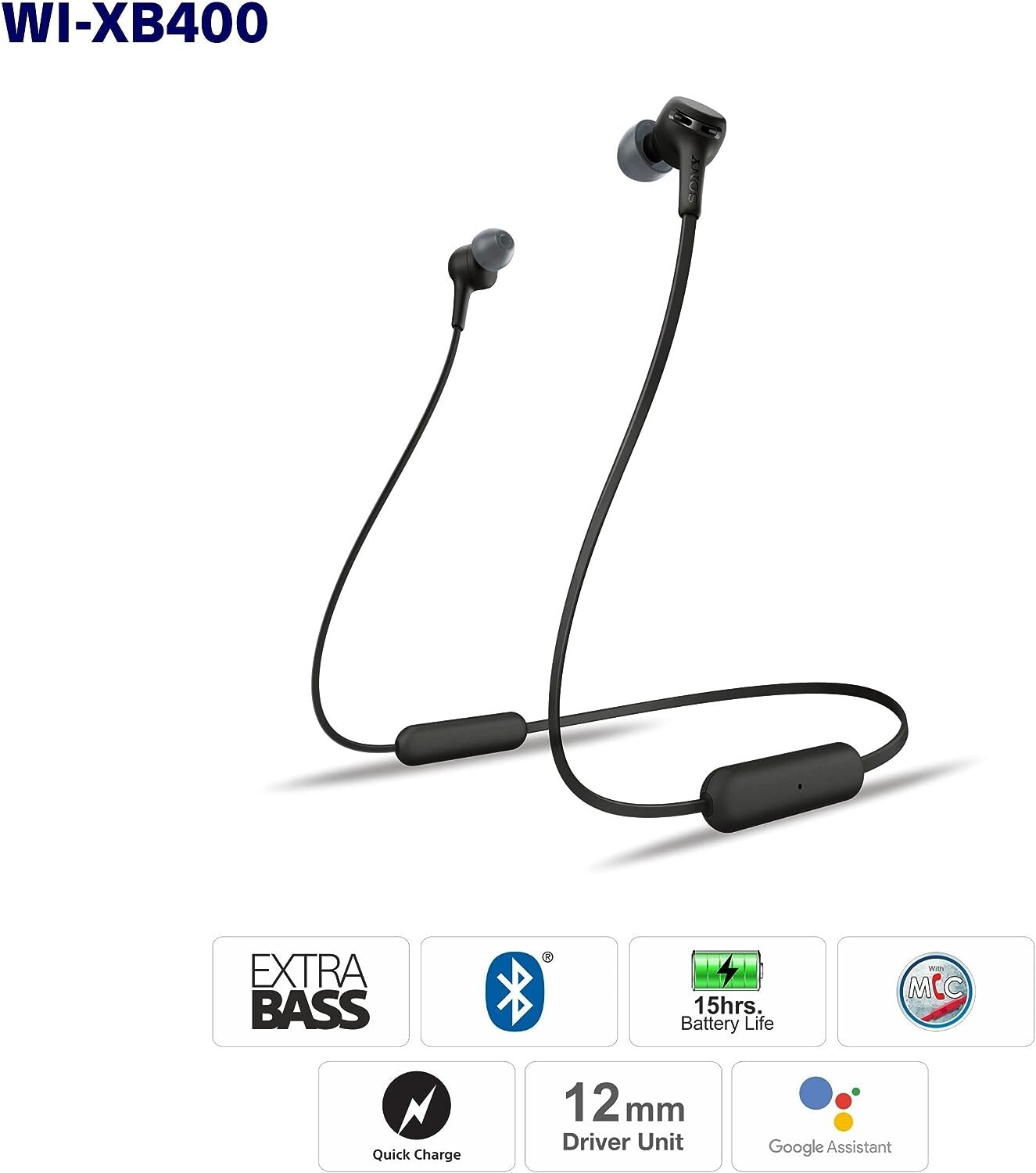 Sony WI-XB400 Wireless Bluetooth Headphones Wireless Earbuds Black