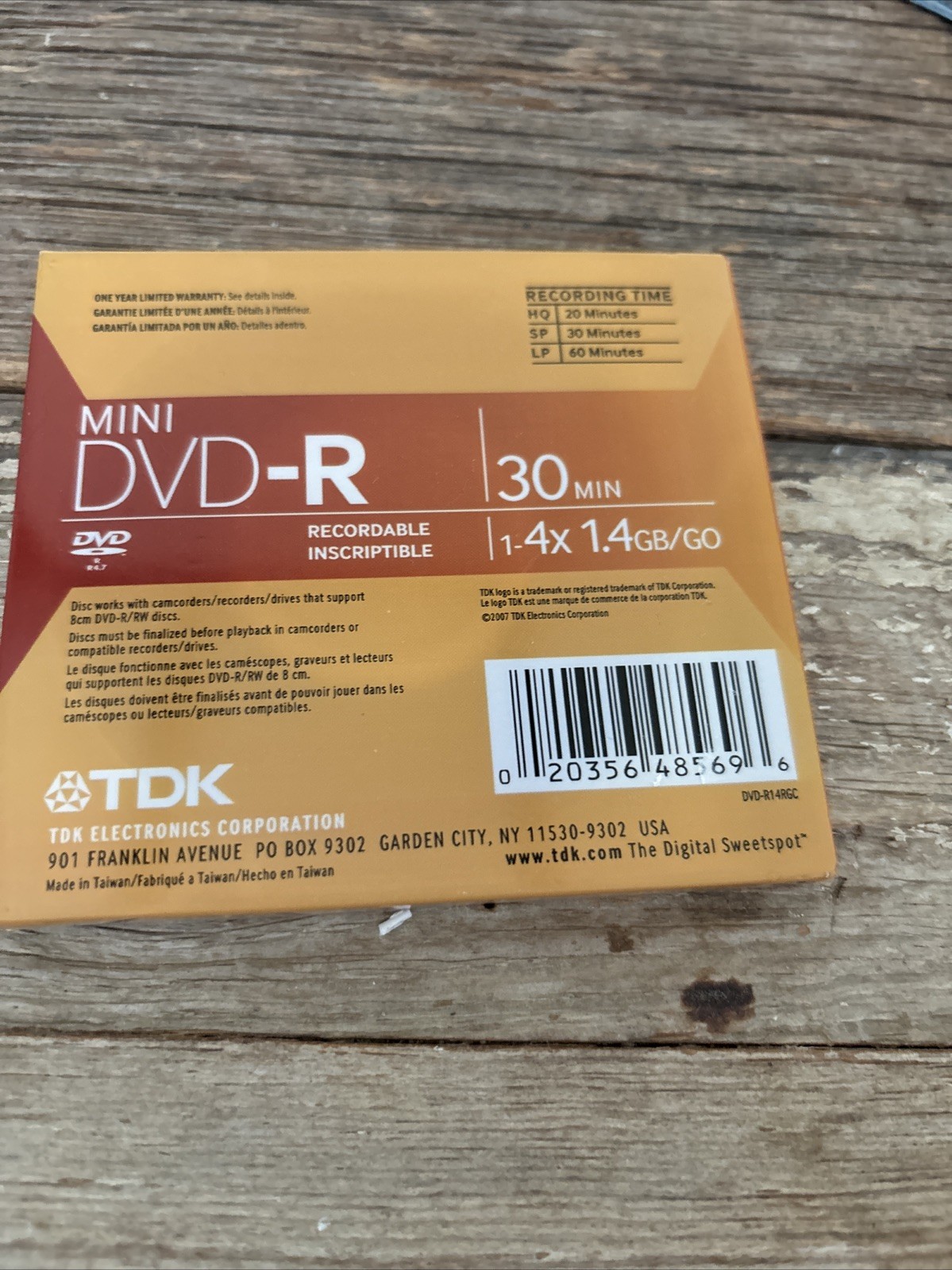 TDK MIni DVD-R Disc New Factory Sealed Recordable Inscriptible Media 1.4GB