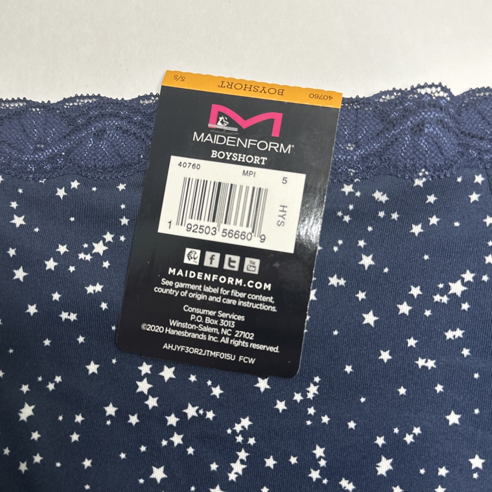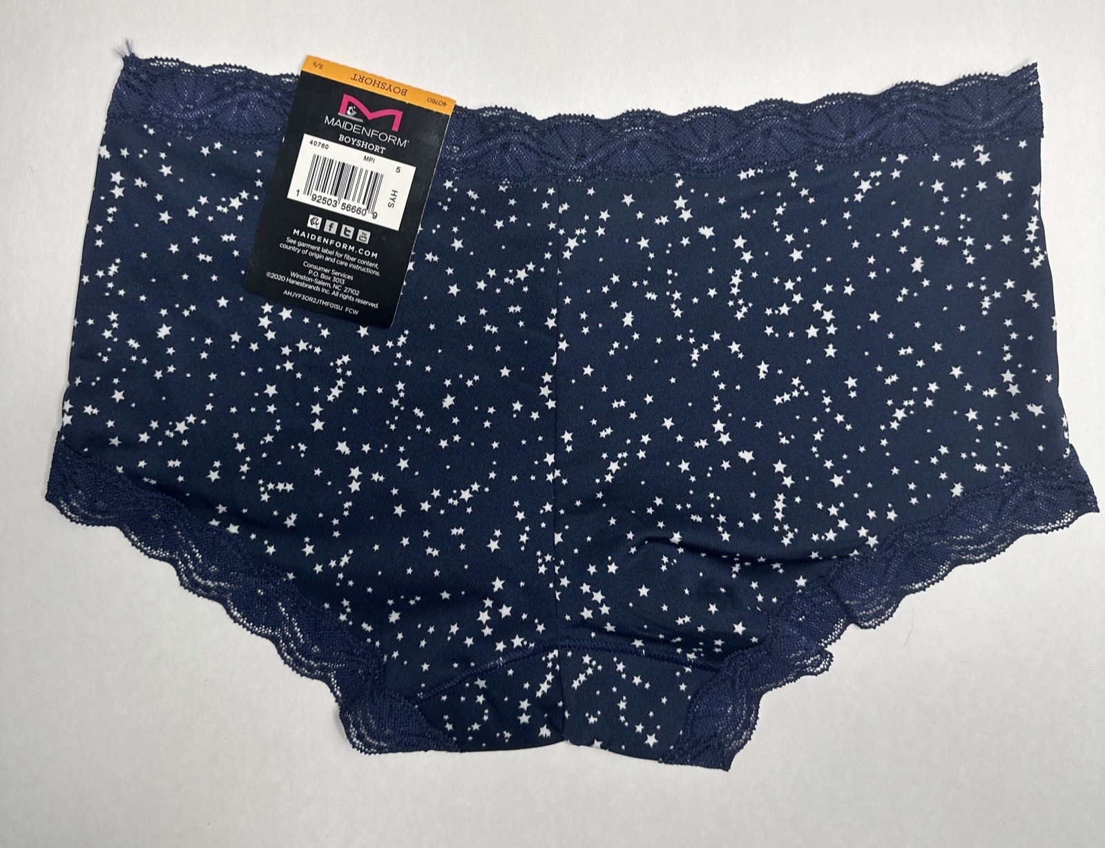 Maidenform One Fabulous Fit Boyshort Panties 40760 S/5 Navy Blue Star Lace NEW