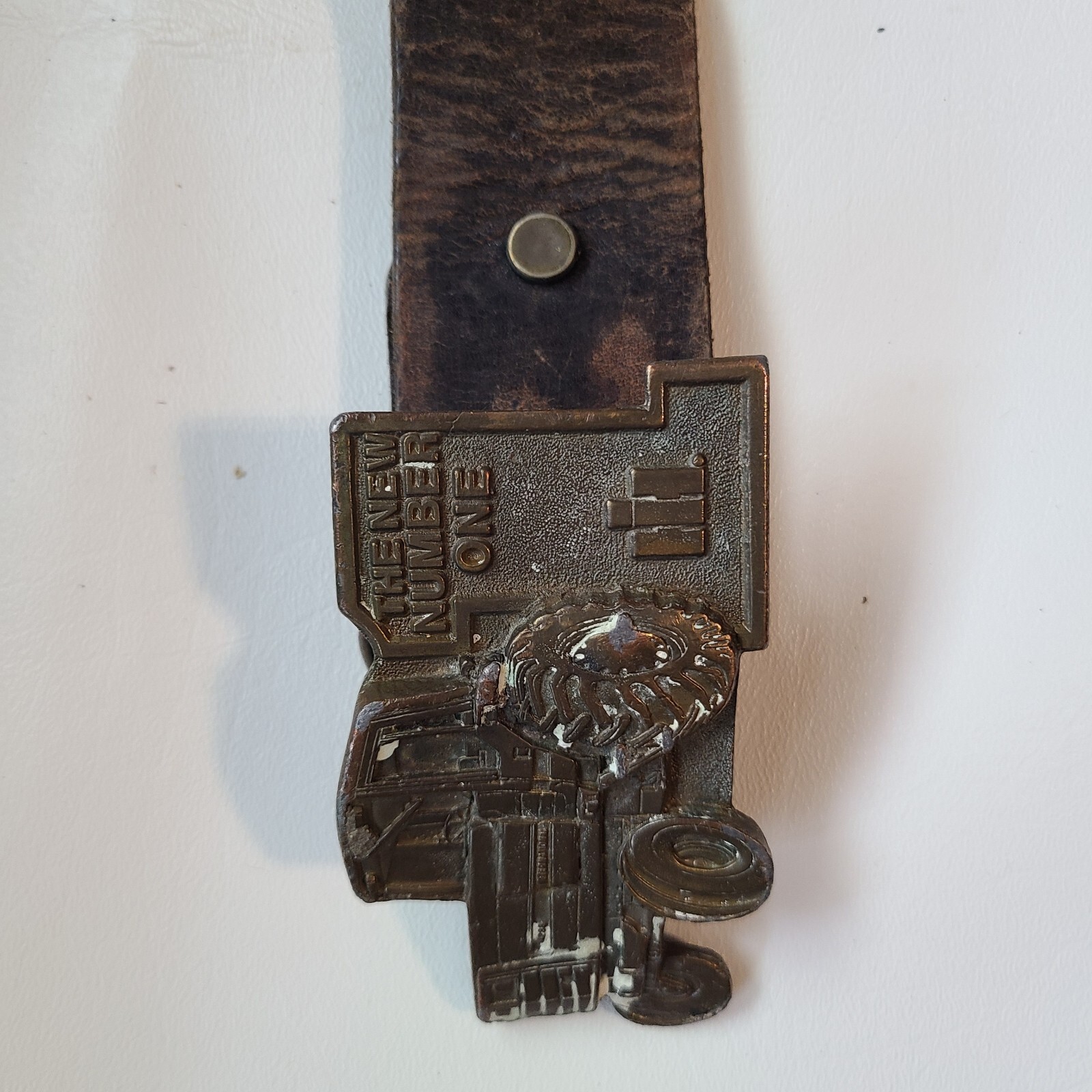 International Harvester IH THE NEW NUMBER ONE Leather Brass Belt Buckle Tractor