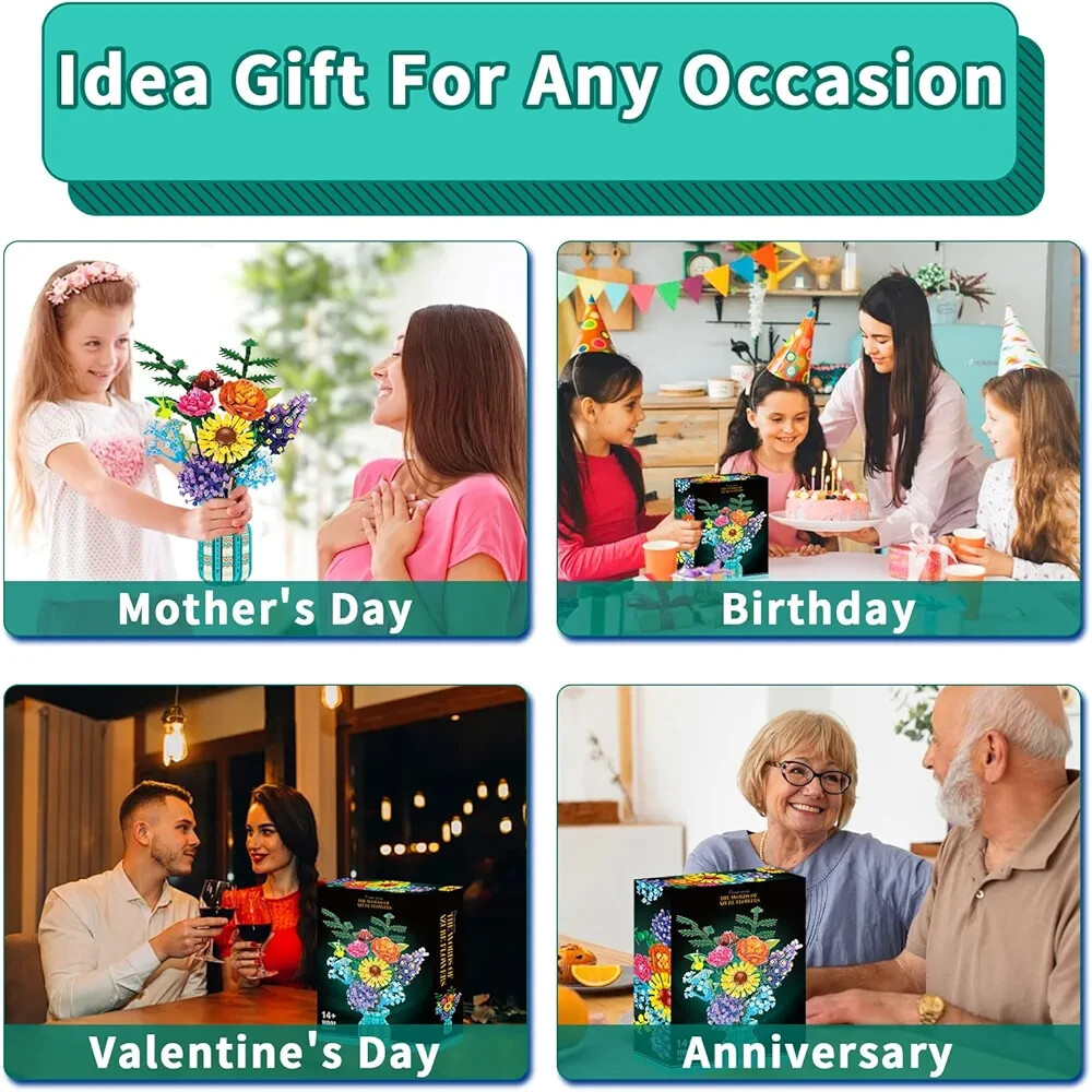 Flowers Bouquet Building Blocks Set with Vase sunflower 1769 pieces