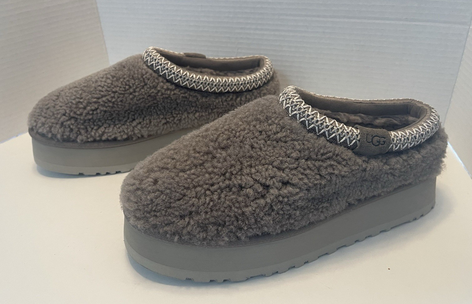 NWOT UGG MAXI CURLY TAZZ PLATFORM WOMEN'S SLIPPERS 1167770 GRAY SIZE 10