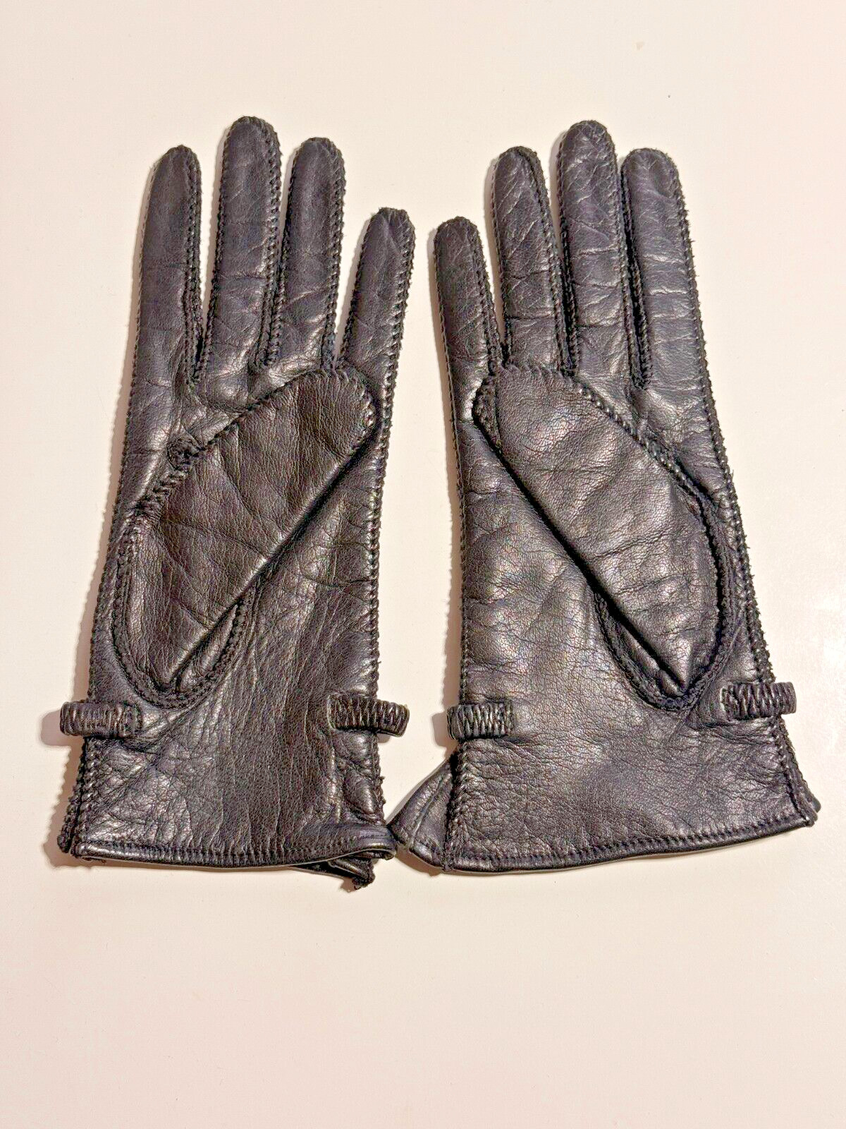 как выглядит Vintage Black Cowhide Soft Leather Ladies Gloves Made in Japan Size S фото