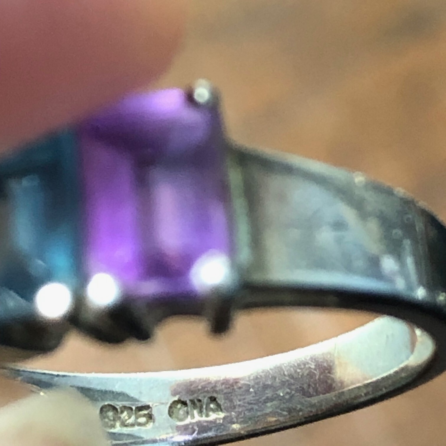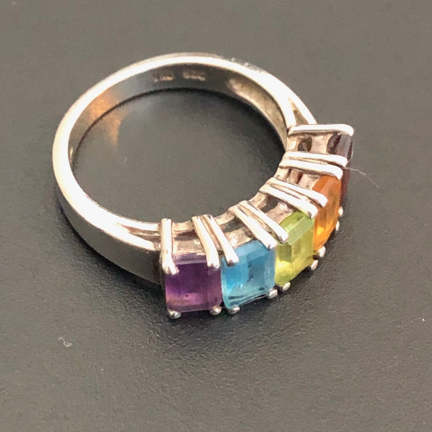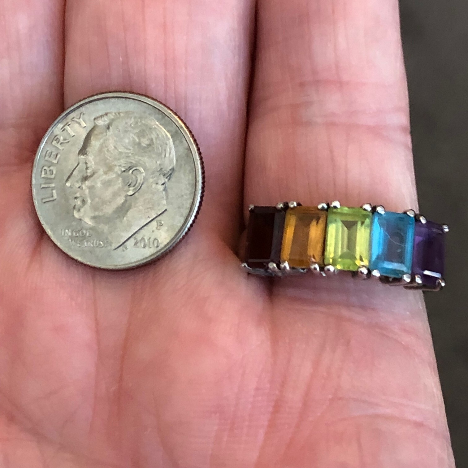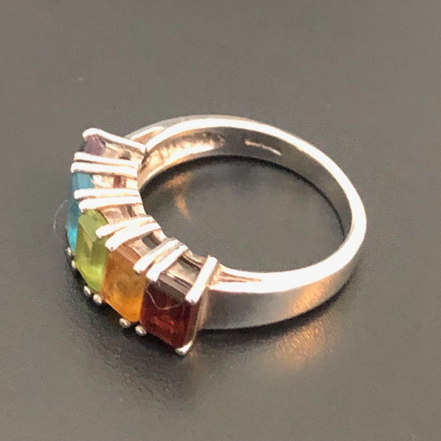 как выглядит Vintage 925 CNA Sterling Silver Rainbow Ring Multi-stone Size 6 3/4 фото