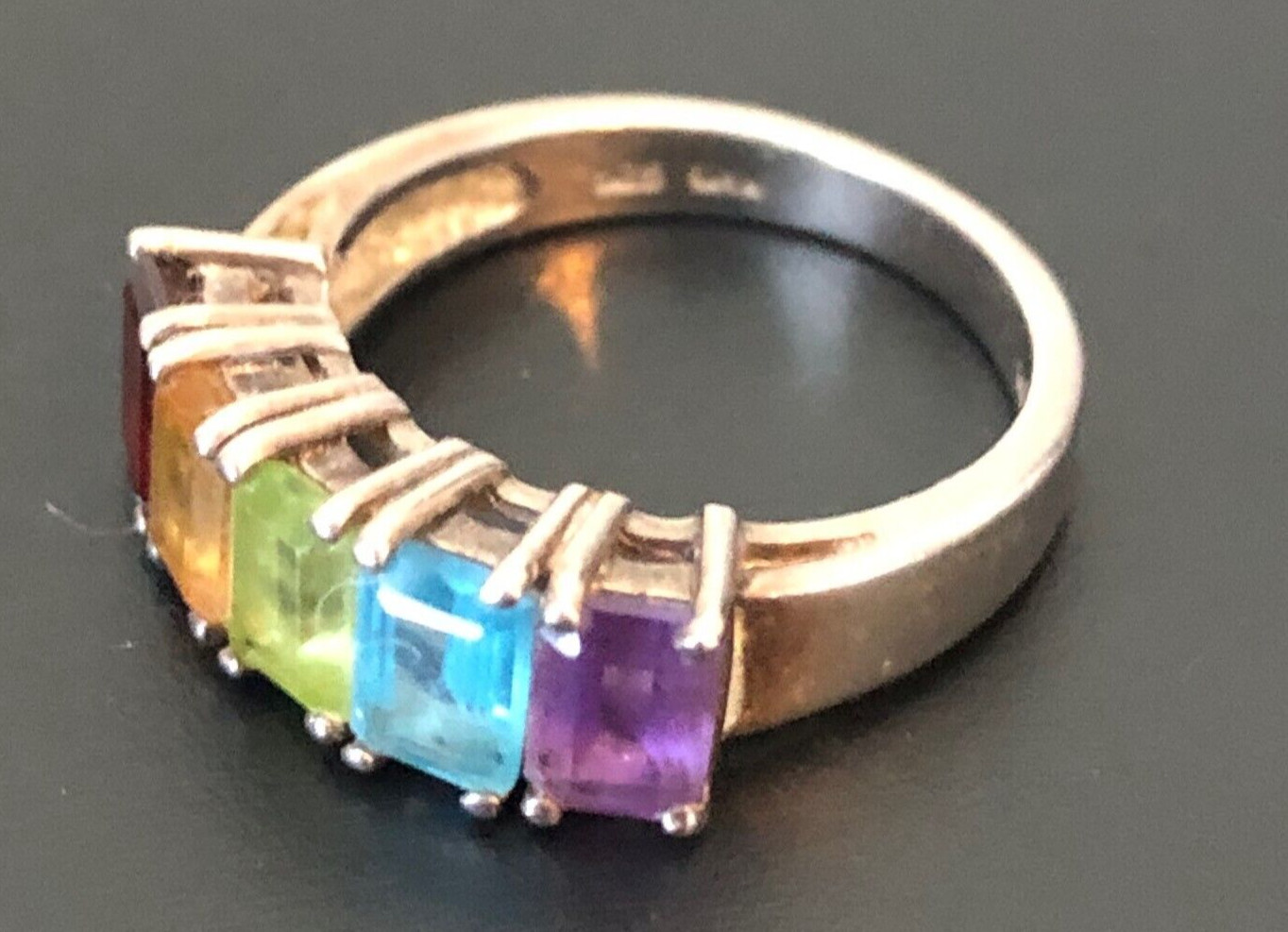 Vintage 925 CNA Sterling Silver Rainbow Ring Multi-stone Size 6 3/4