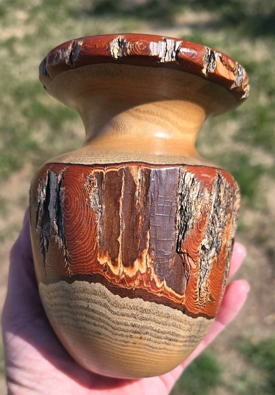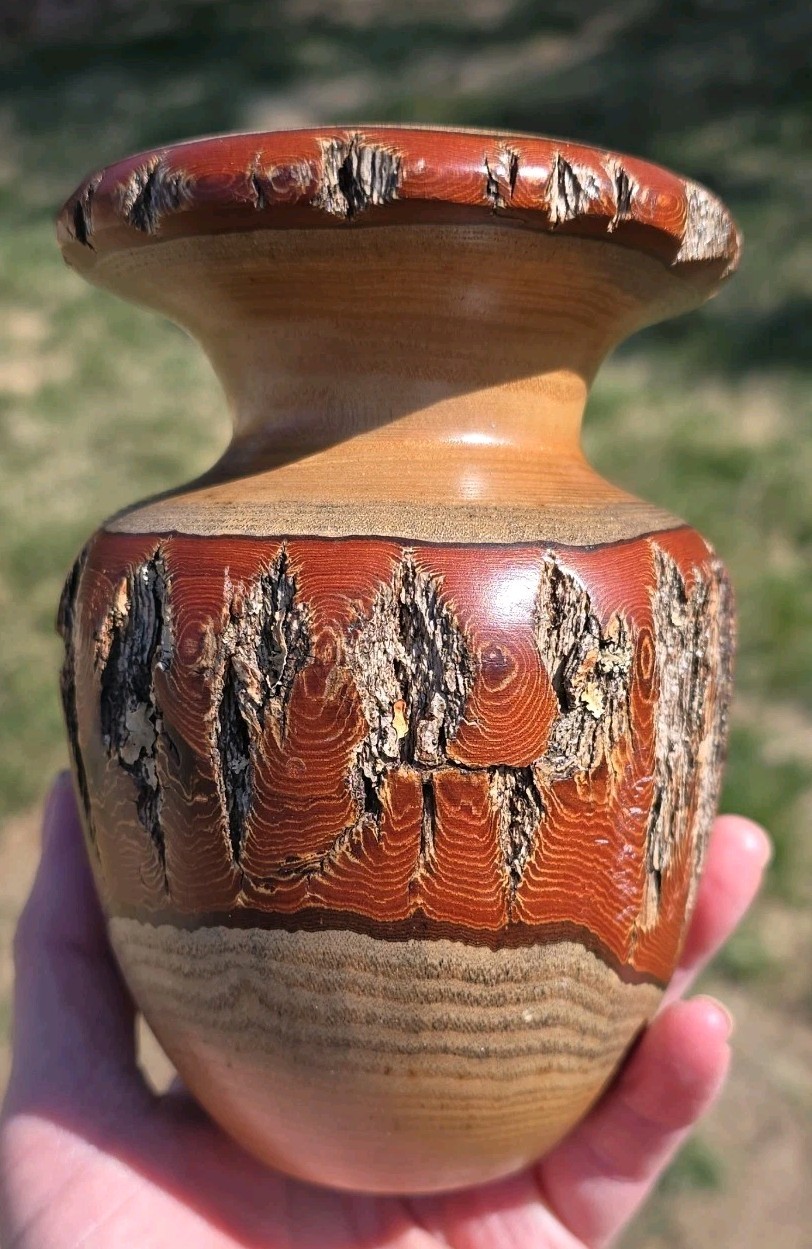 Mid Century Modern Hand Turned Burl Wood Vase 5.5 Farmhouse Rustic Cabin Lodge