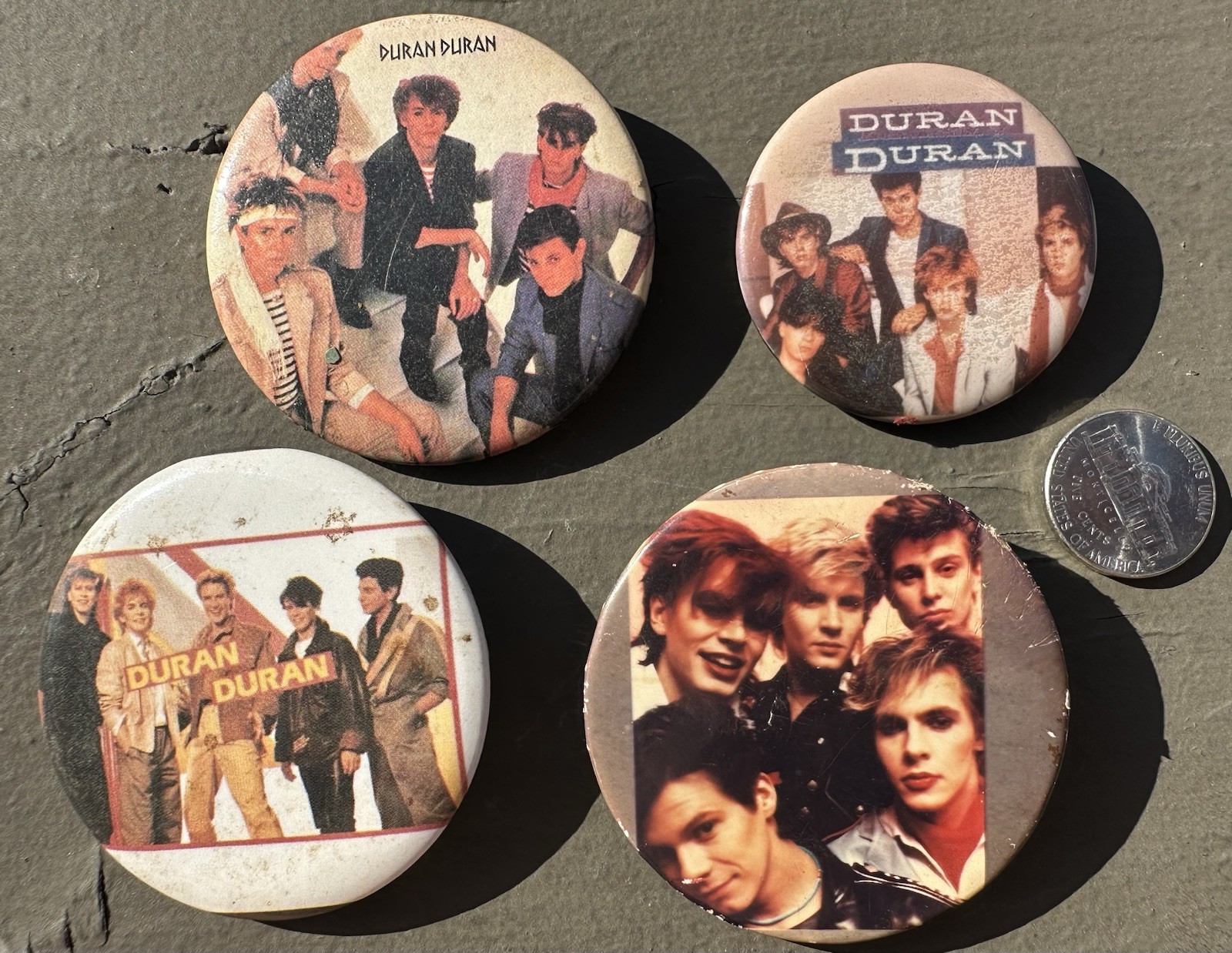 LOT OF 4 VINTAGE DURAN DURAN PINS BUTTONS - I AM THE ORIGINAL OWNER DD LOT A