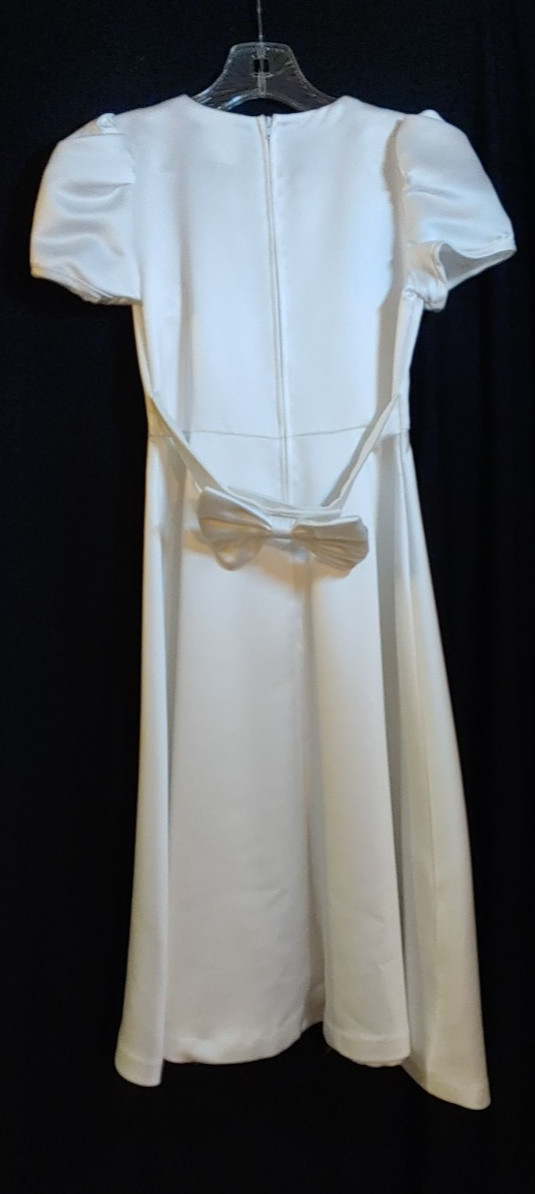 Vtg Girls Size 10 First Communion Formal Dress Ankle Length White Satin RN21386