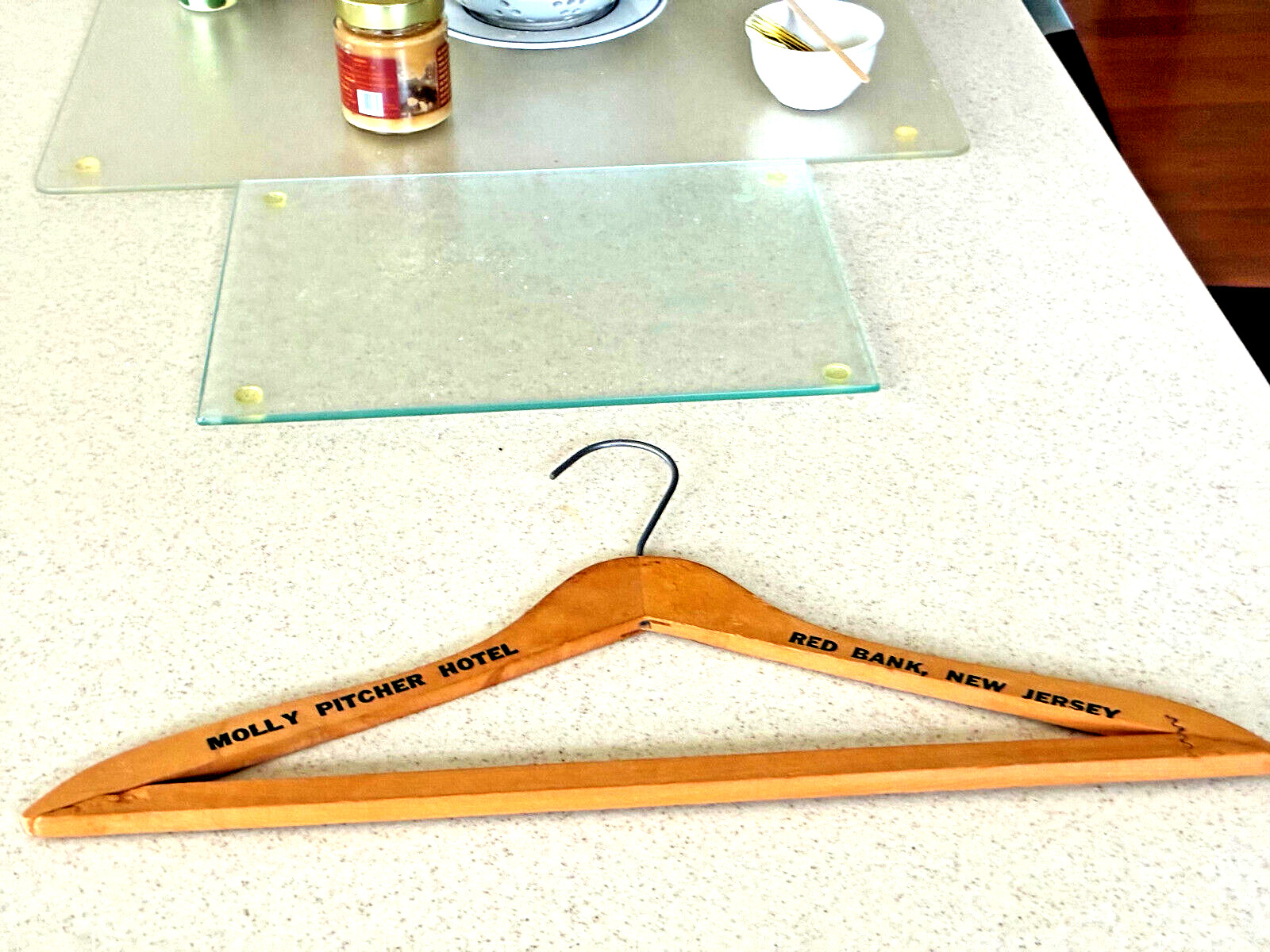 как выглядит Vintage Molly Pitcher Hotel Red Bank New Jersey Wood Clothes Suit Hanger фото
