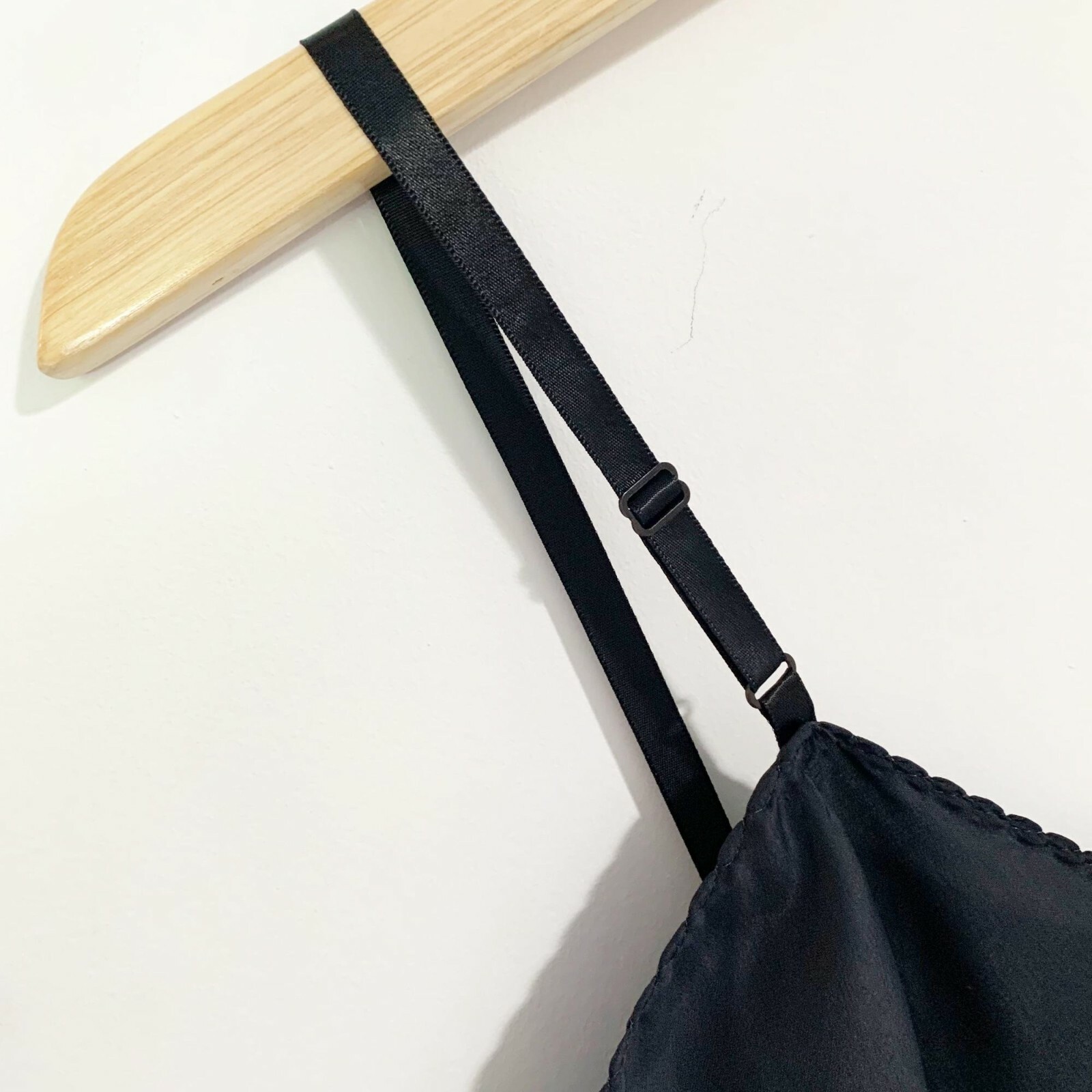 Vintage Union Made Wonder Maid Scalloped Slip Dress Nightgown Black Size Small