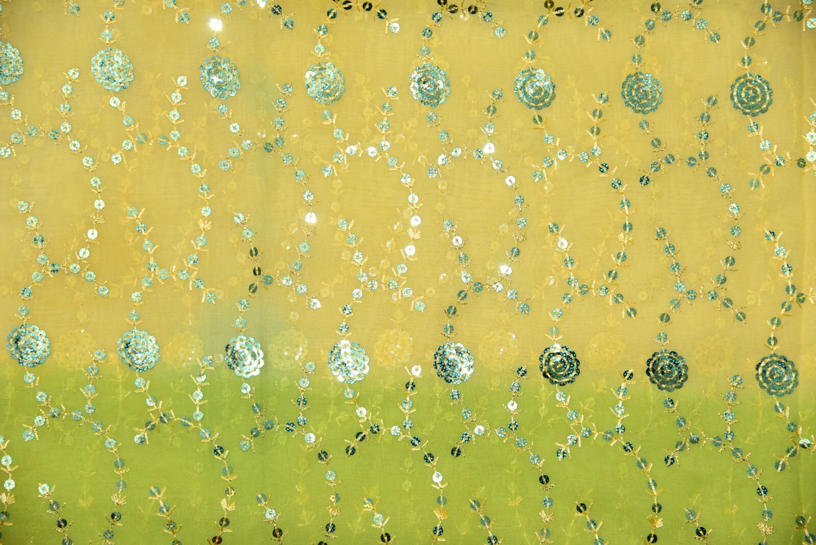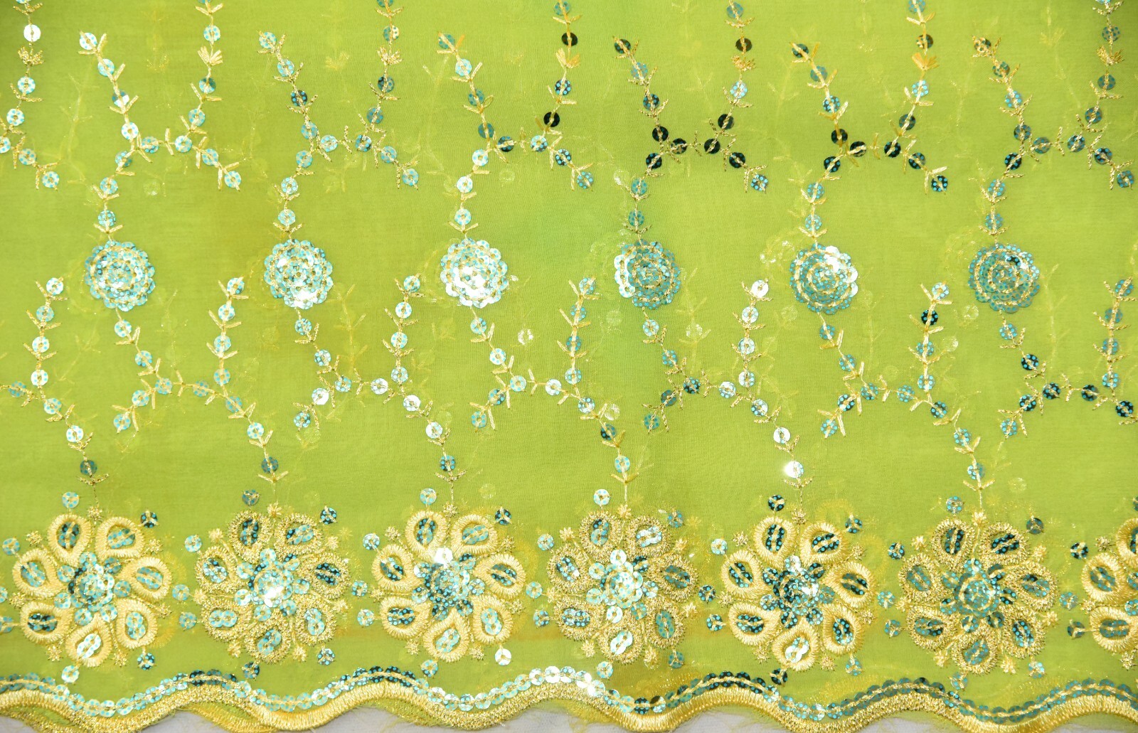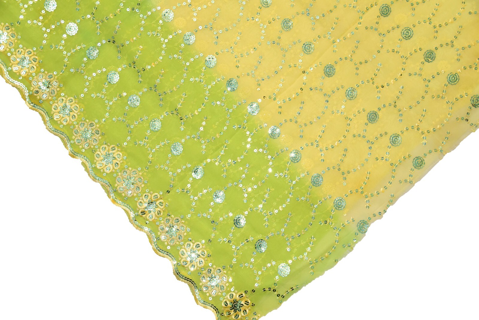Vintage Indian Bridal Green Cream Dupatta Sequins Beaded Scarf Stole Hijab L