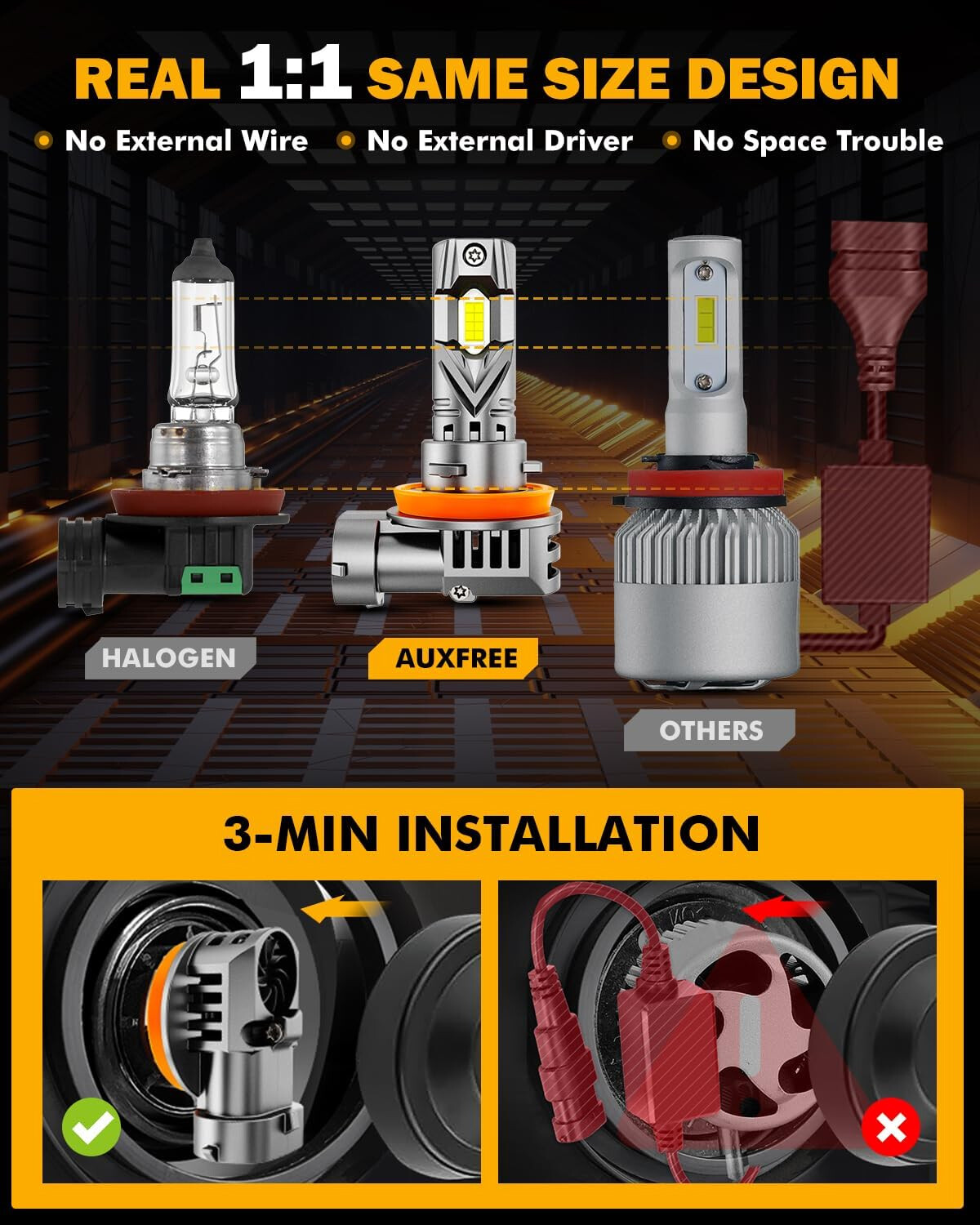 как выглядит AUXBEAM Canbus H9 H11 LED Headlight Super Bright Bulb Kit 6500K 25000LM High/Low фото