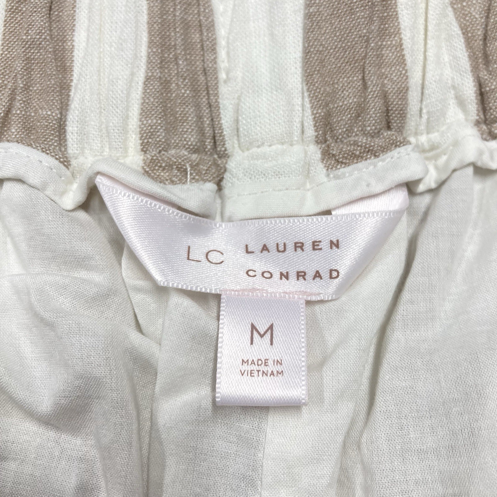 LC Lauren Conrad White Brown Striped Wide Leg Flowy Pants Women's Size M
