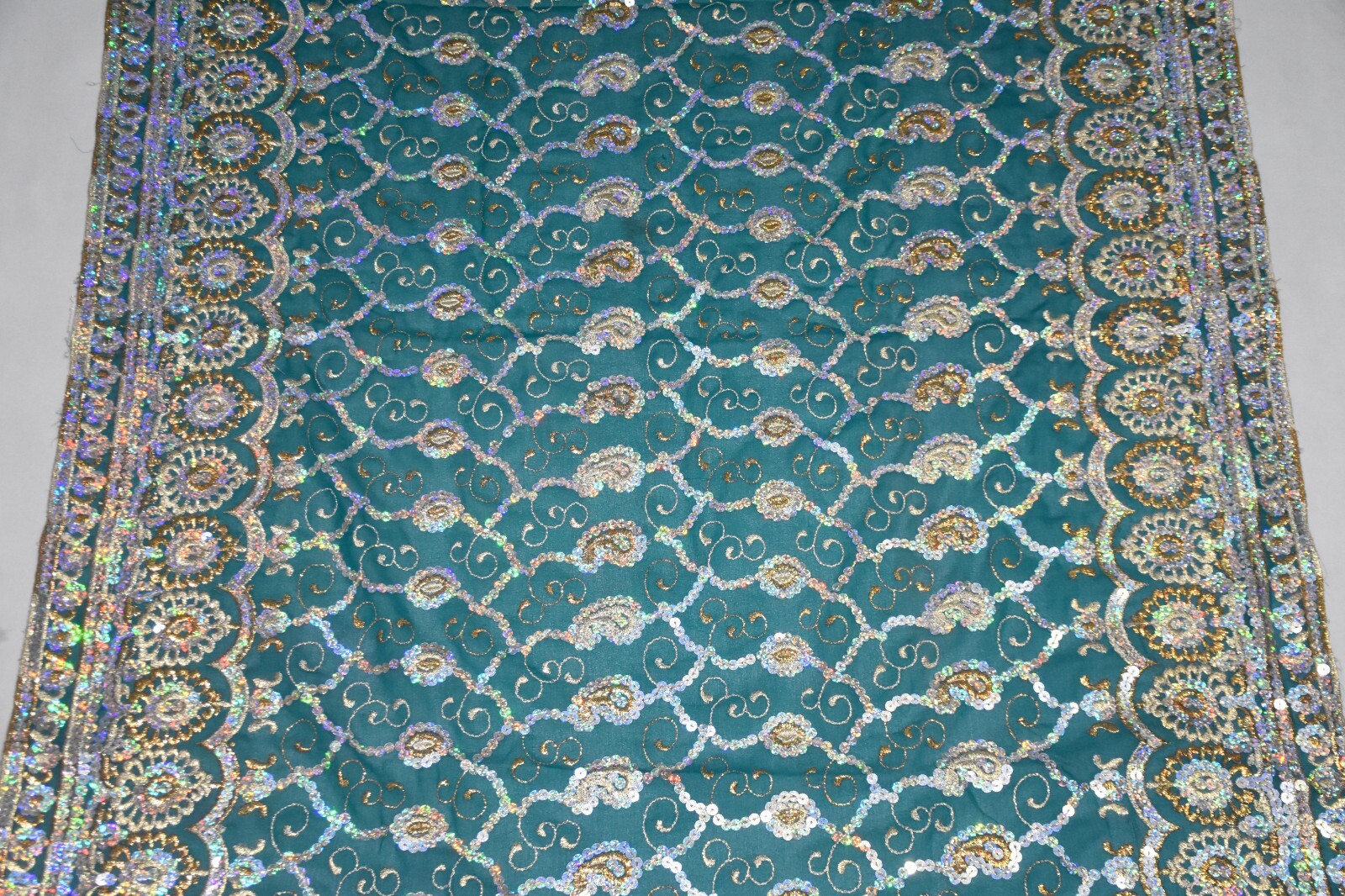 как выглядит Vintage Indian Georgette Dupatta Beaded Hand Embroidery Scarf Veil Stole Hijab фото