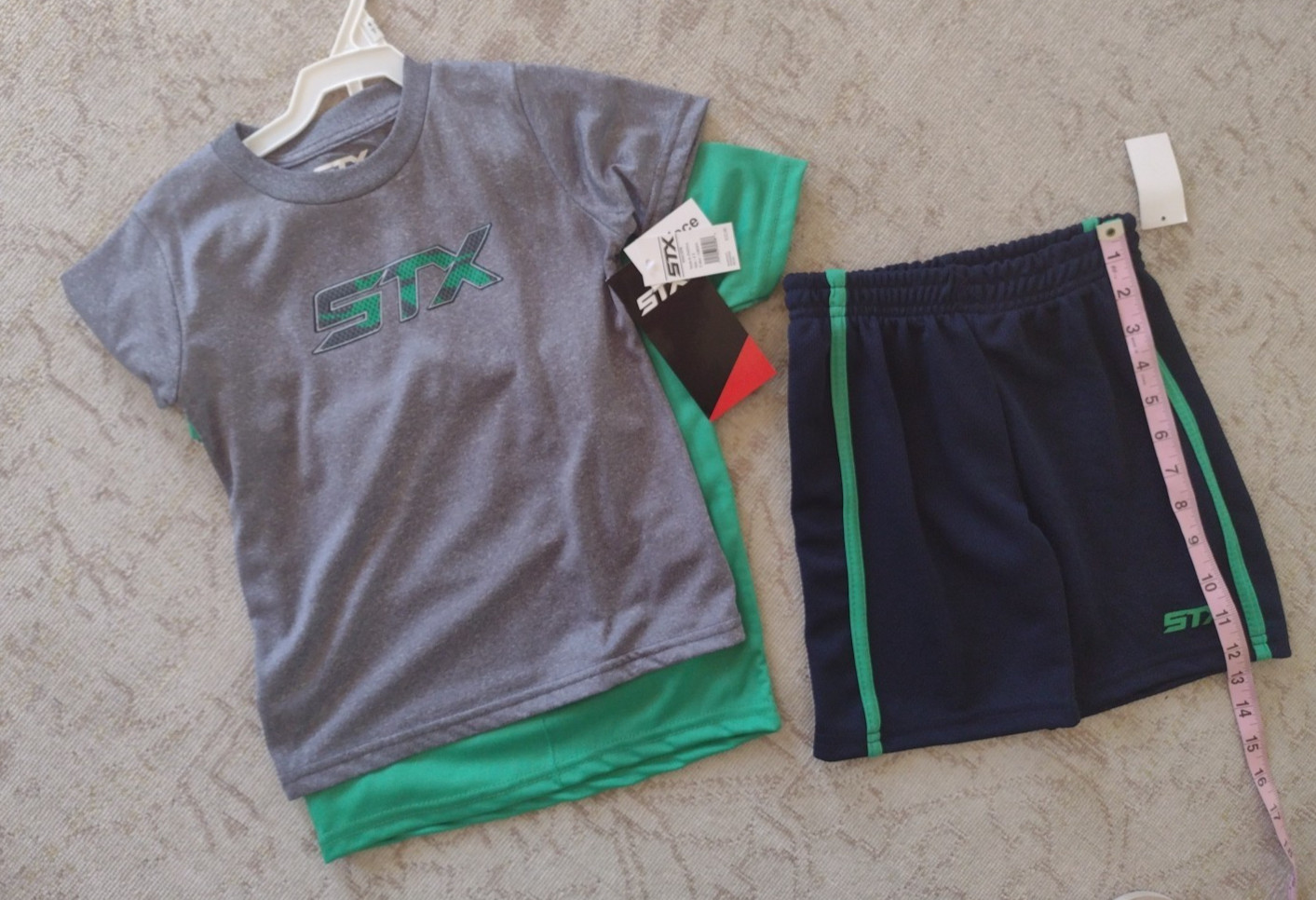 Stx Boys 2 Shirts Short Set gym basketball Green navy sz 4T NEW t shirt