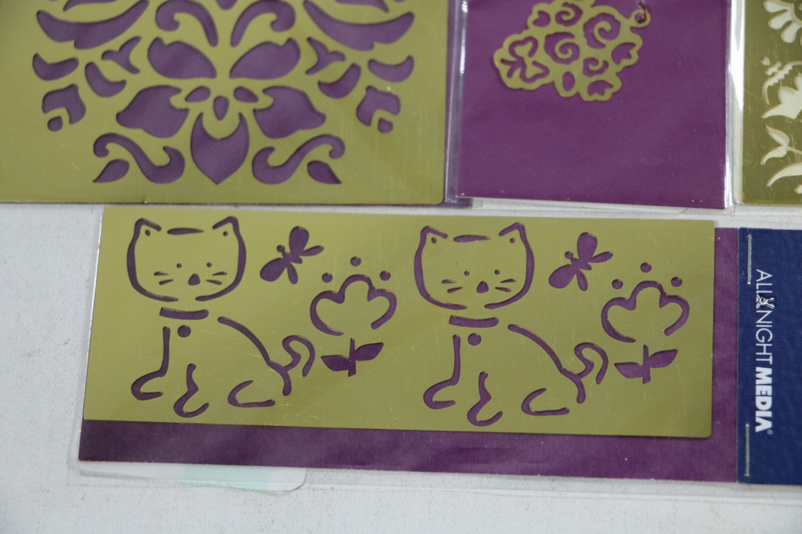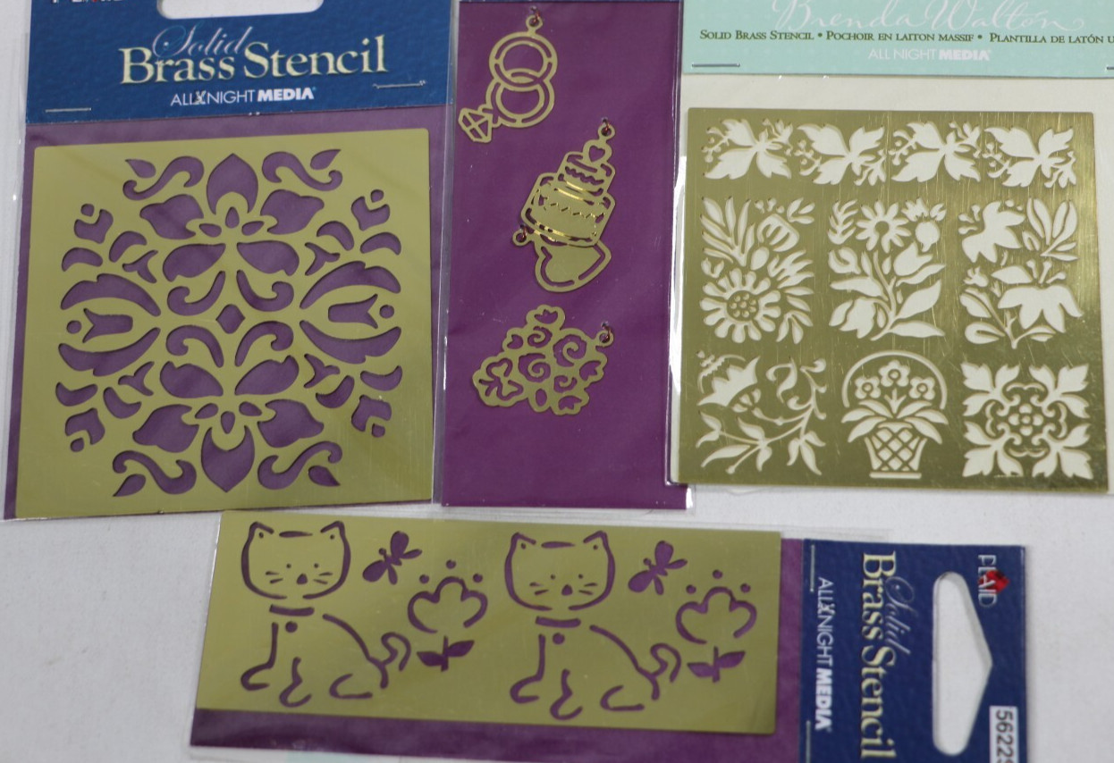 Brass Embossing Stencils Lot of 4 NEW Flowers, Cats,.... Plaid All Night Media