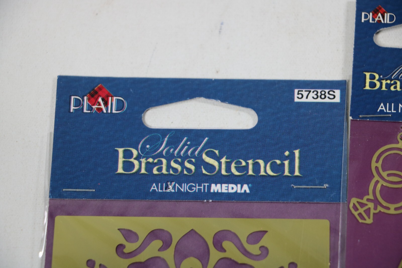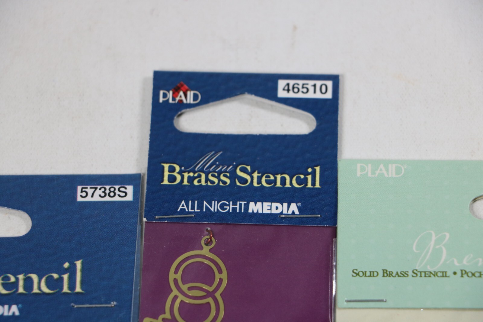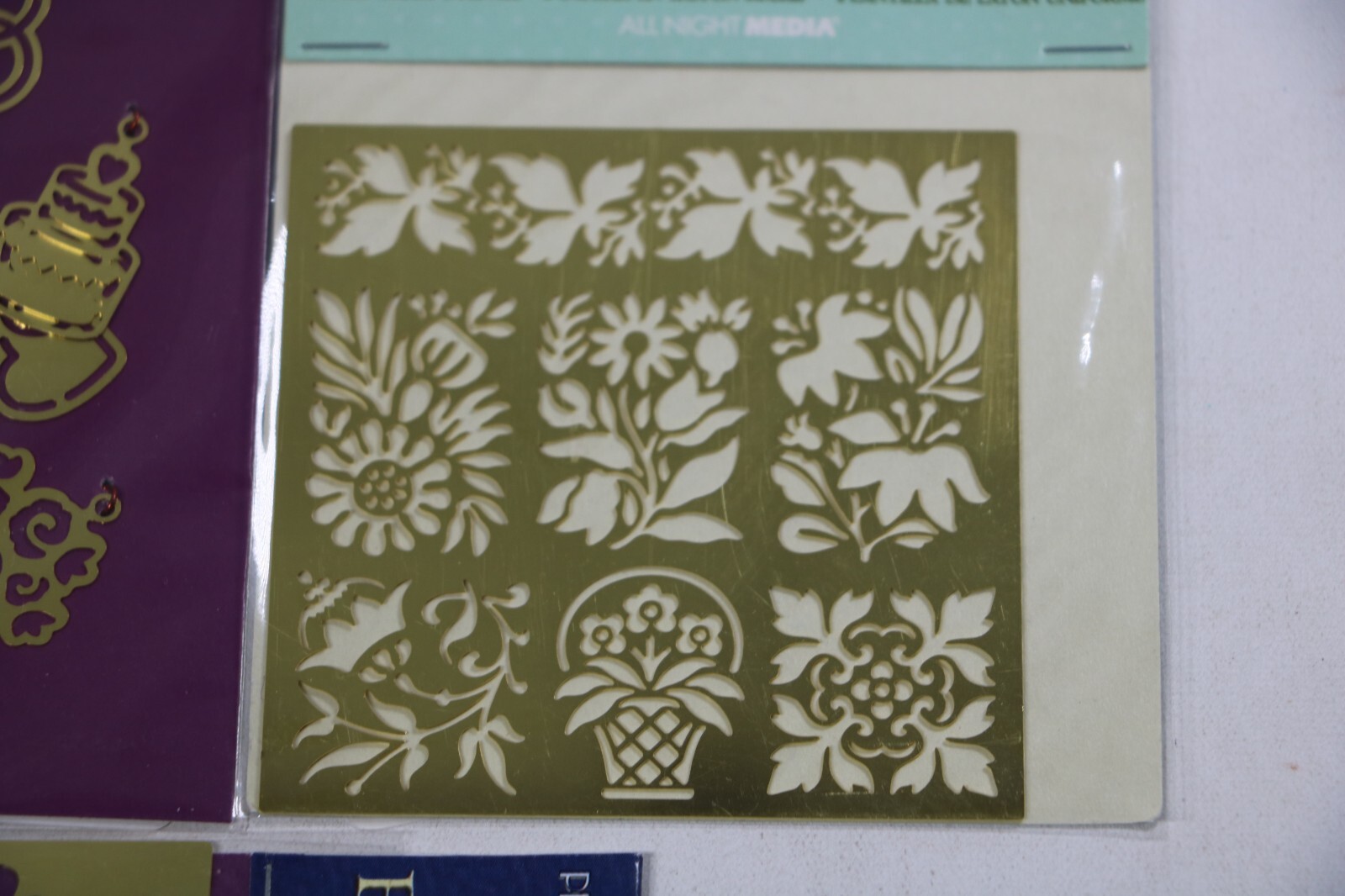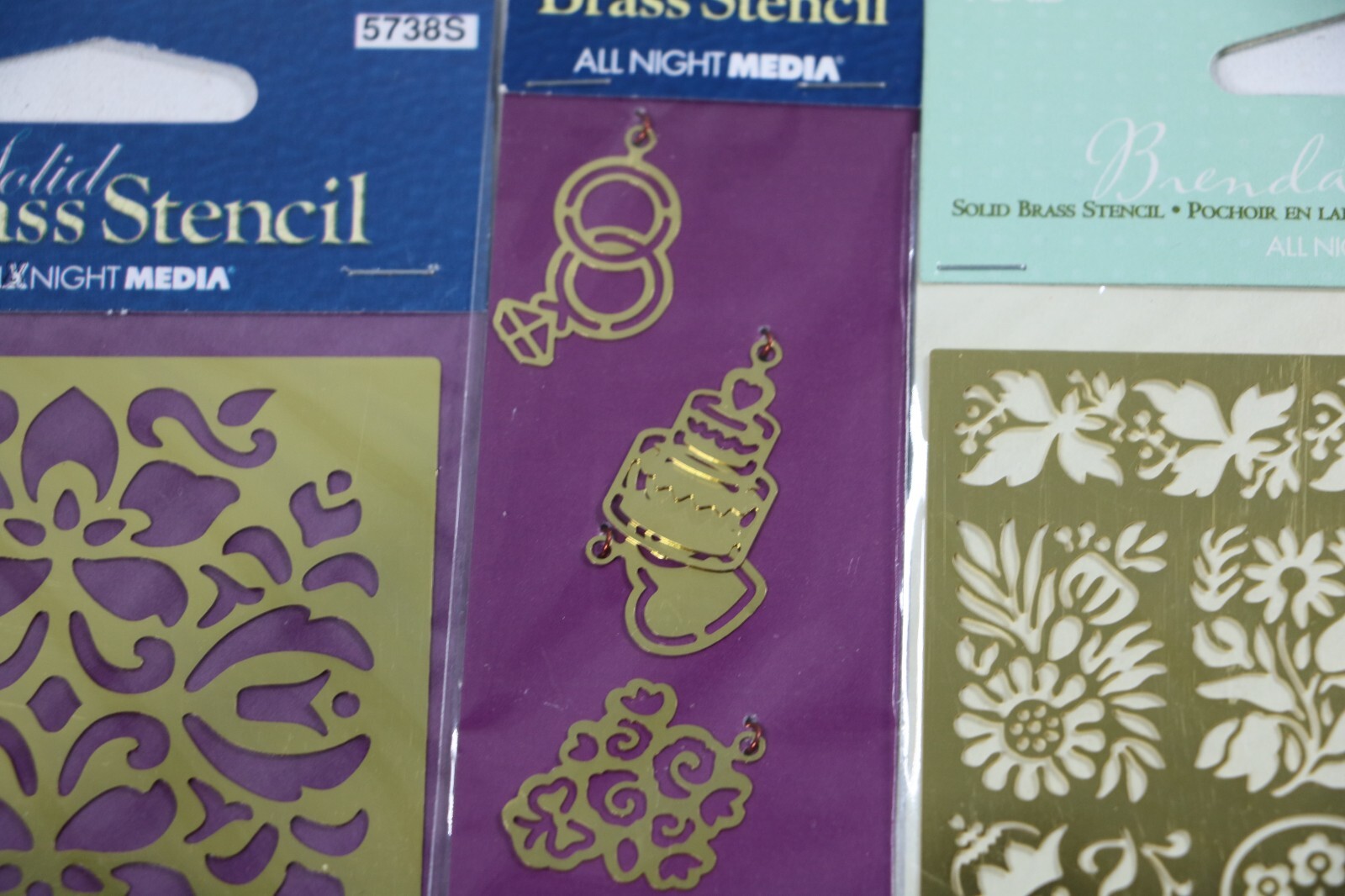 как выглядит Brass Embossing Stencils Lot of 4 NEW Flowers, Cats,.... Plaid All Night Media фото