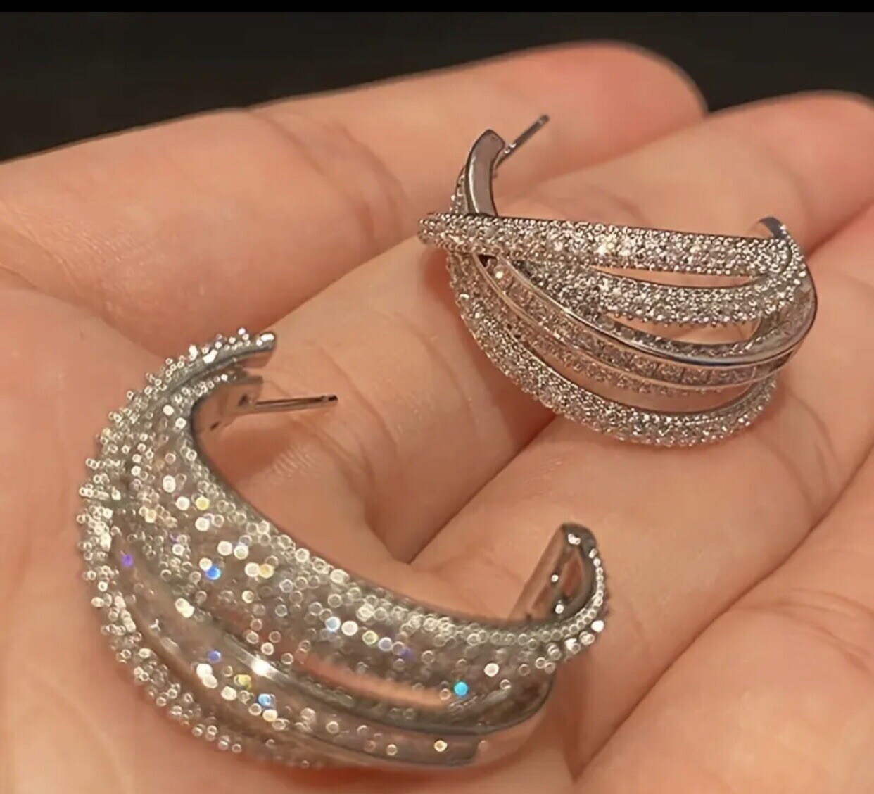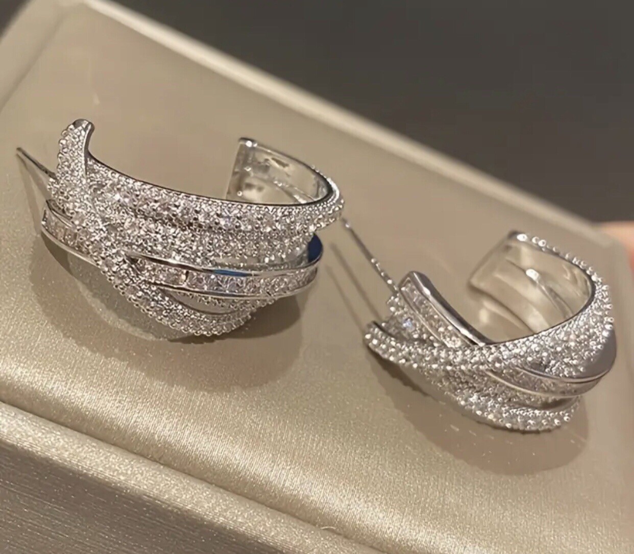 Sterling Silver White Sapphire Multi Layer Drop Earrings