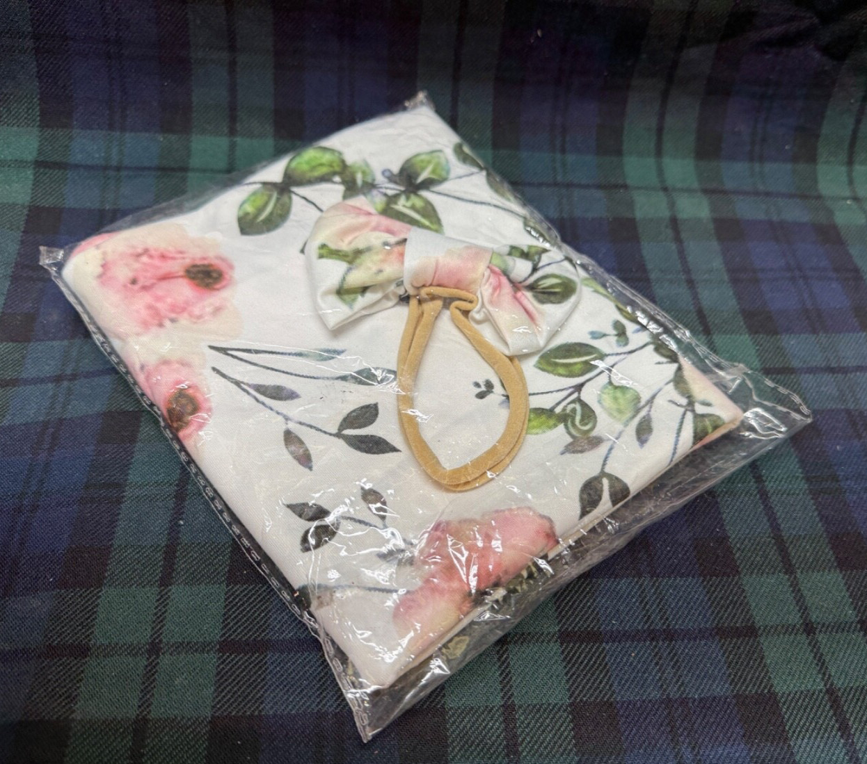 Receiving Blanket for Baby Girl Swaddle with Headband 0-3 Month Green Pink Flowe