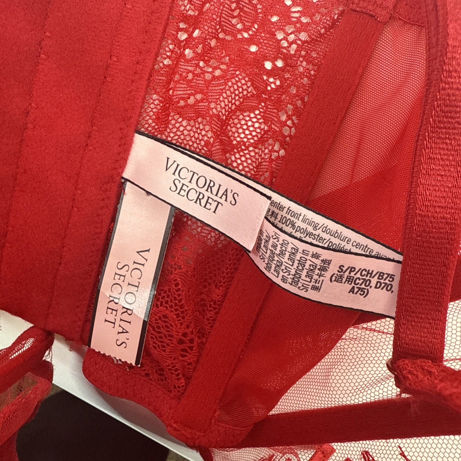 как выглядит Victoria Secret Dream Angels Unlined Lace-Up Corset Top Red Size Small S New фото